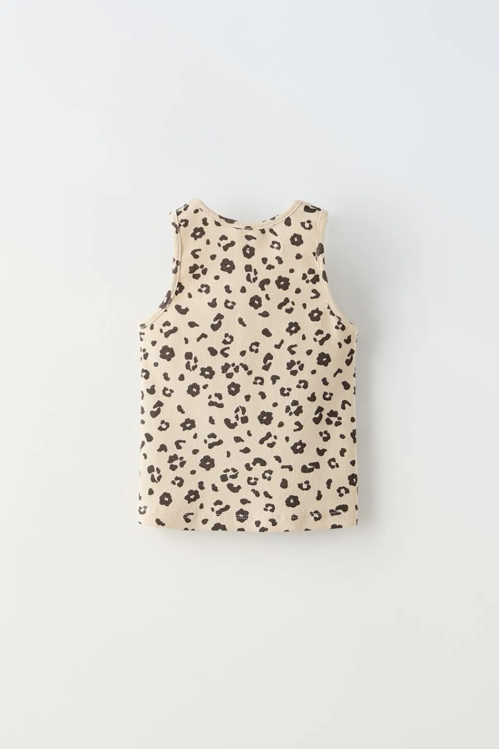 Camiseta con cuello redondo y manga sisa. Estampado animal print.