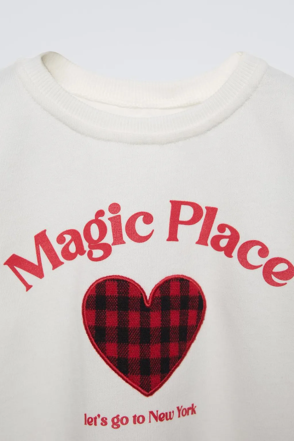Camiseta con cuello redondo y manga larga. Estampado corazón cuadro vichi y texto en delantero.