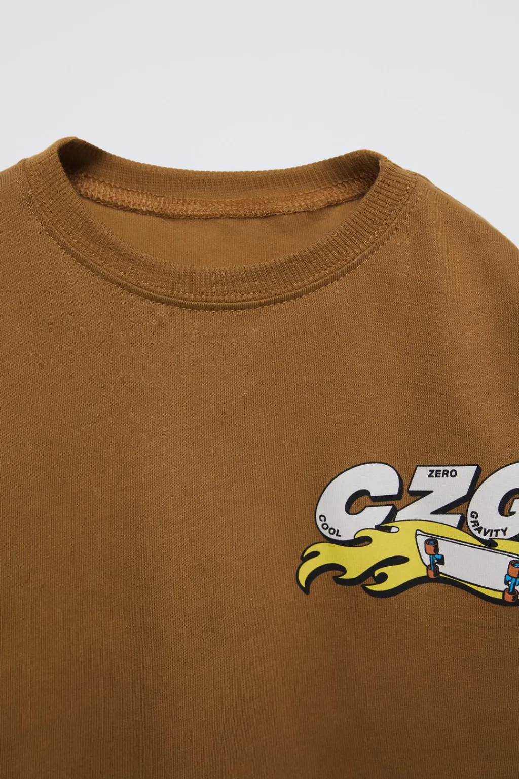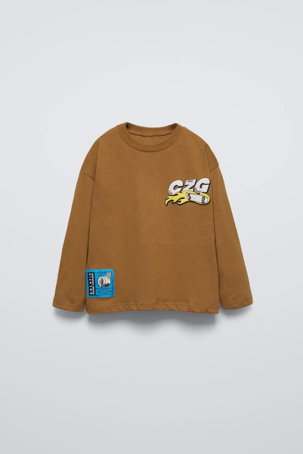 Camiseta con cuello redondo y manga larga. Estampado skate en pechera y espalda. Aplique etiqueta en bajo.