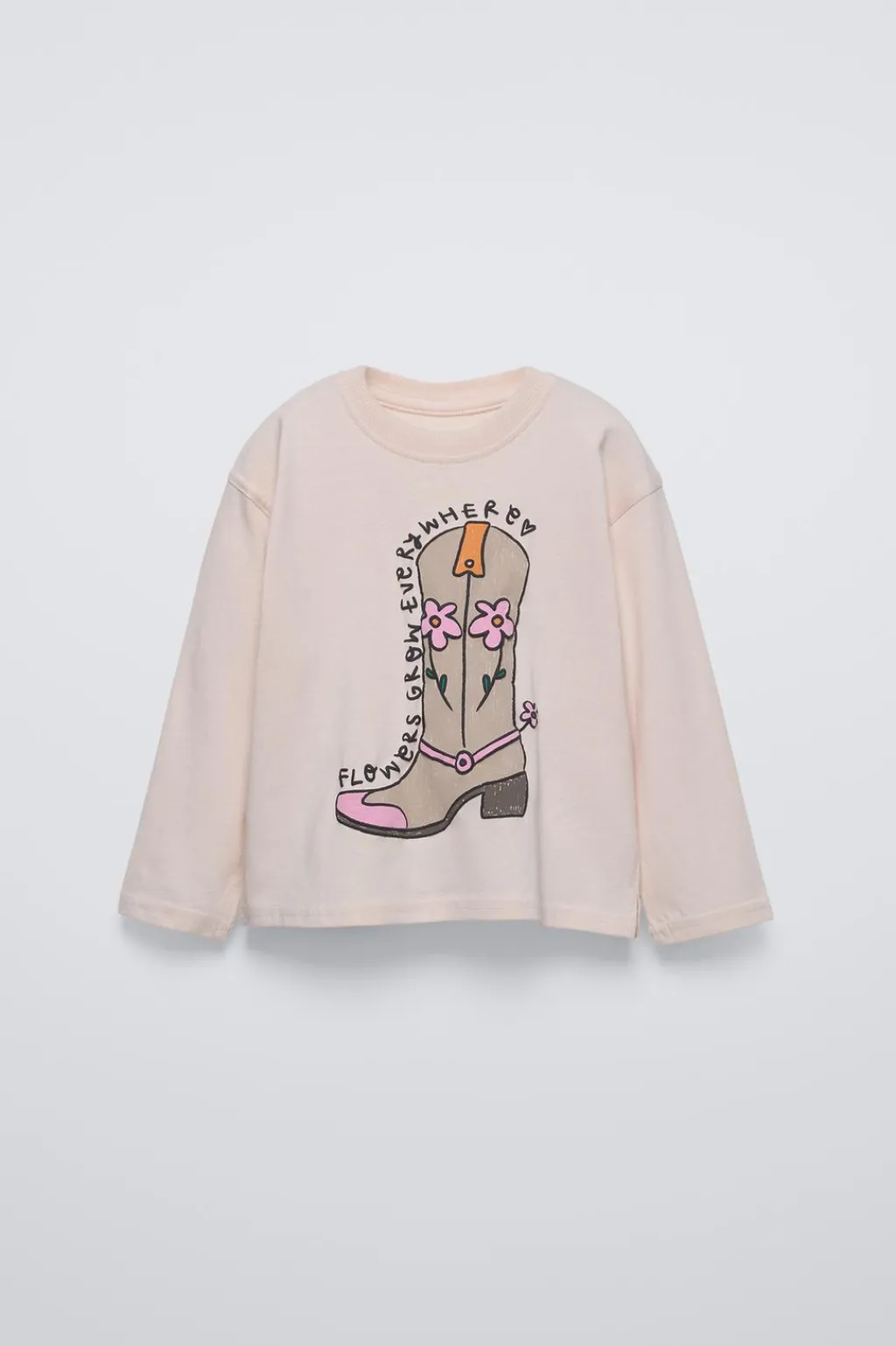 Camiseta con cuello redondo y manga larga. Estampado en delantero.