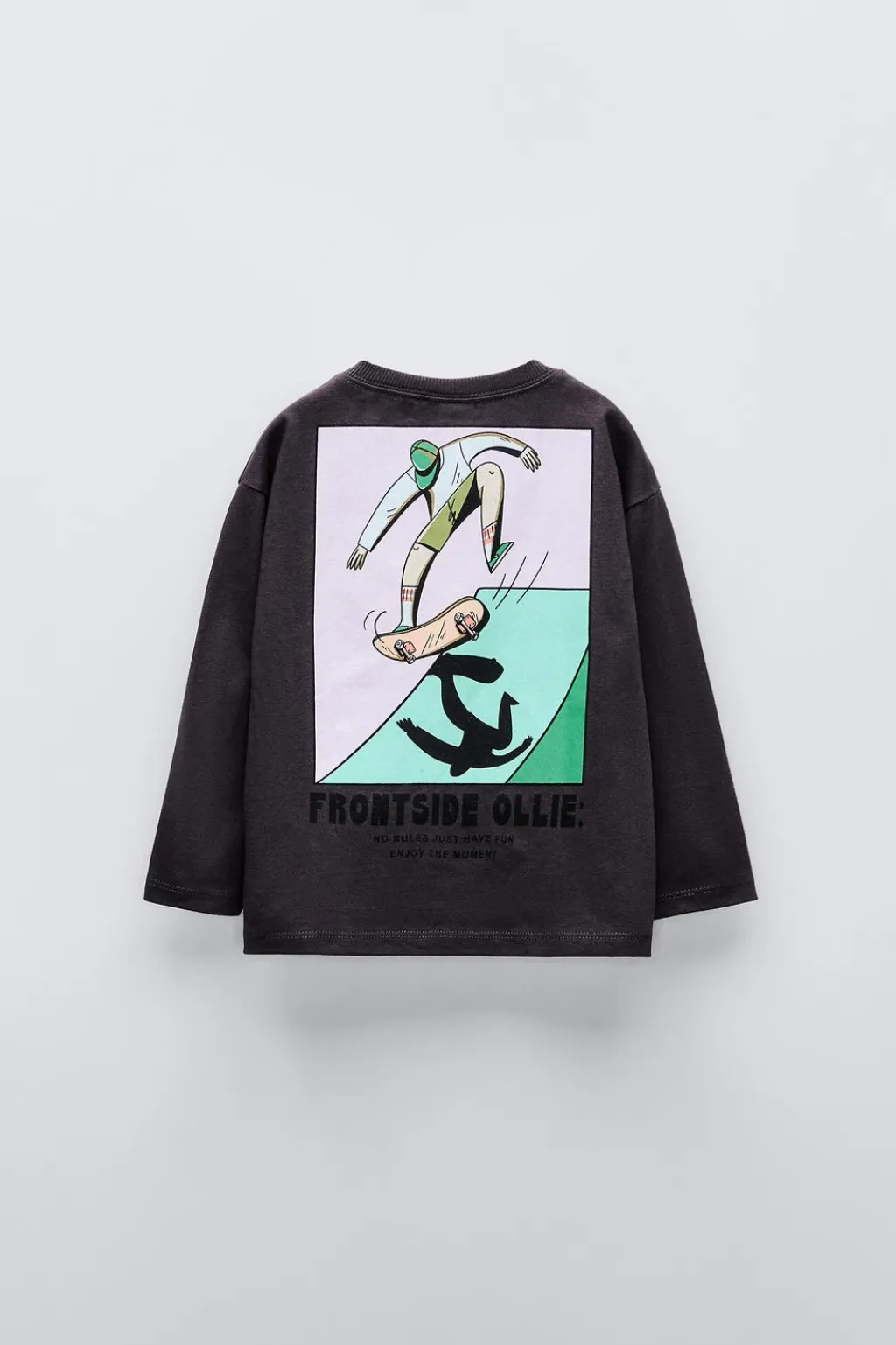 Camiseta con cuello redondo y manga larga. Estampado skater en delantero y espalda.