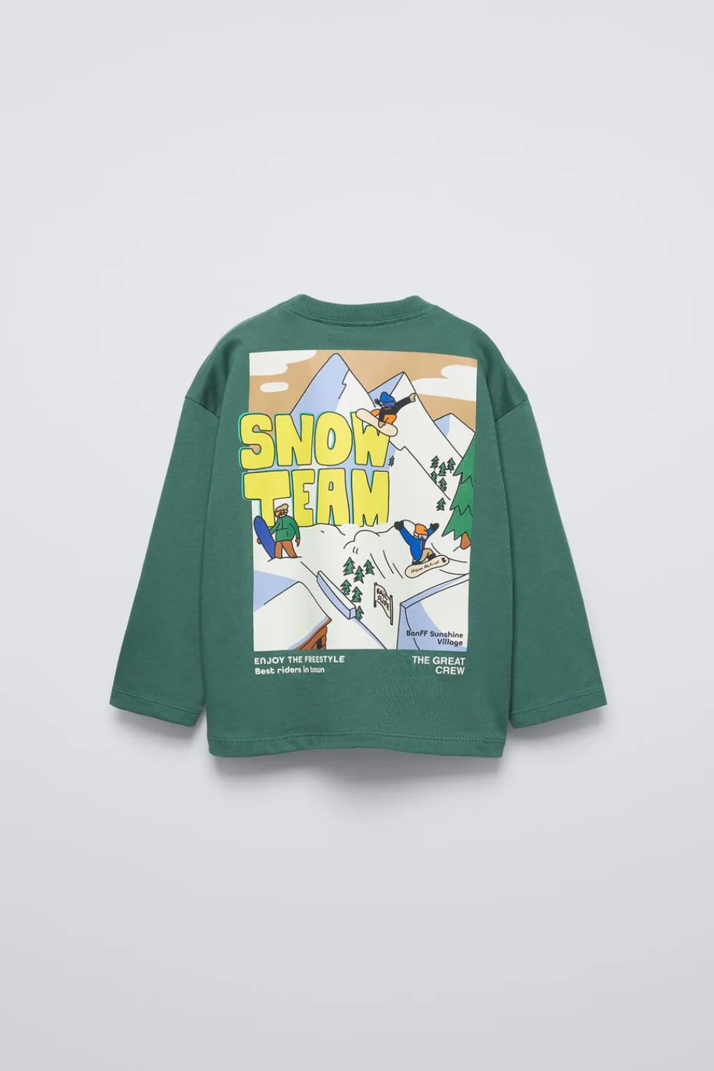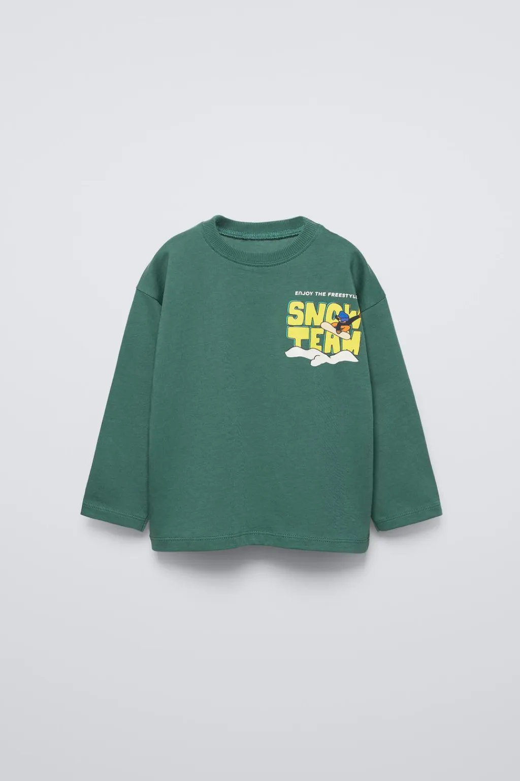 Camiseta con cuello redondo y manga larga. Estampado en pechera y espalda.