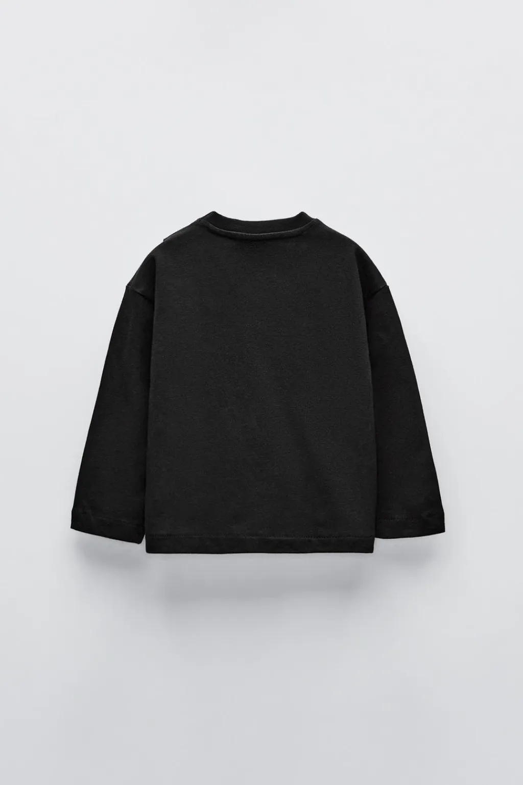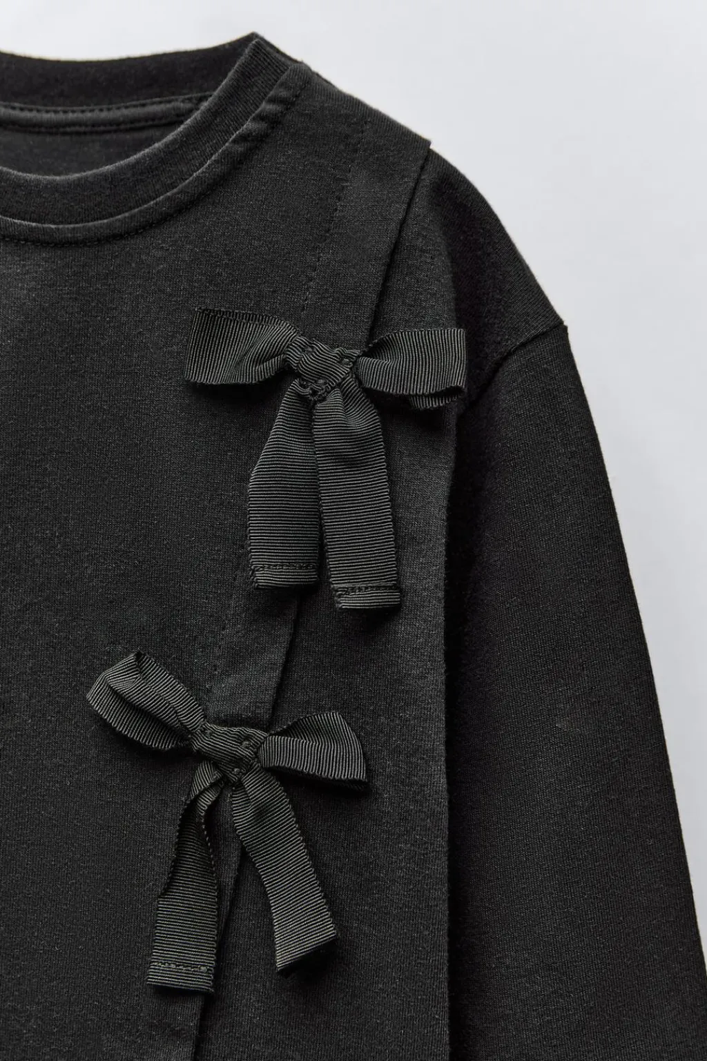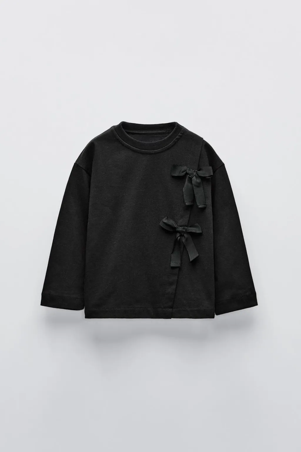 Camiseta con cuello redondo y manga larga. Aplique lacitos en delantero.