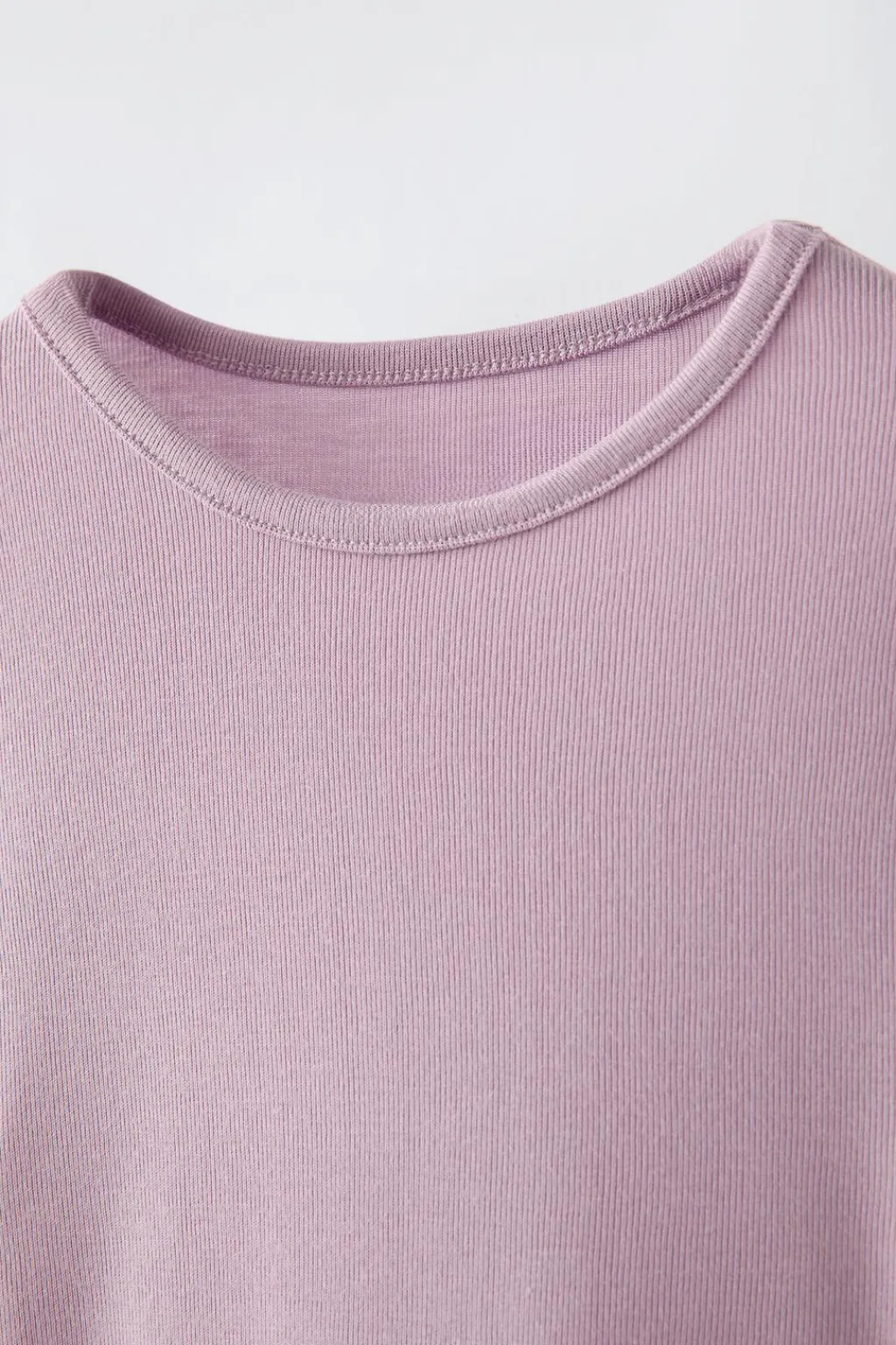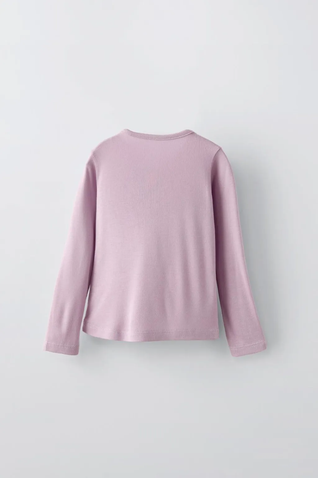Camiseta en tejido ligero con cuello redondo y manga larga.