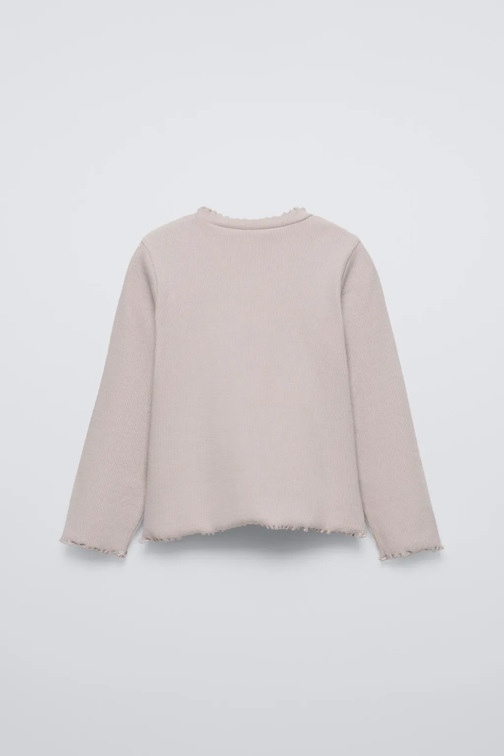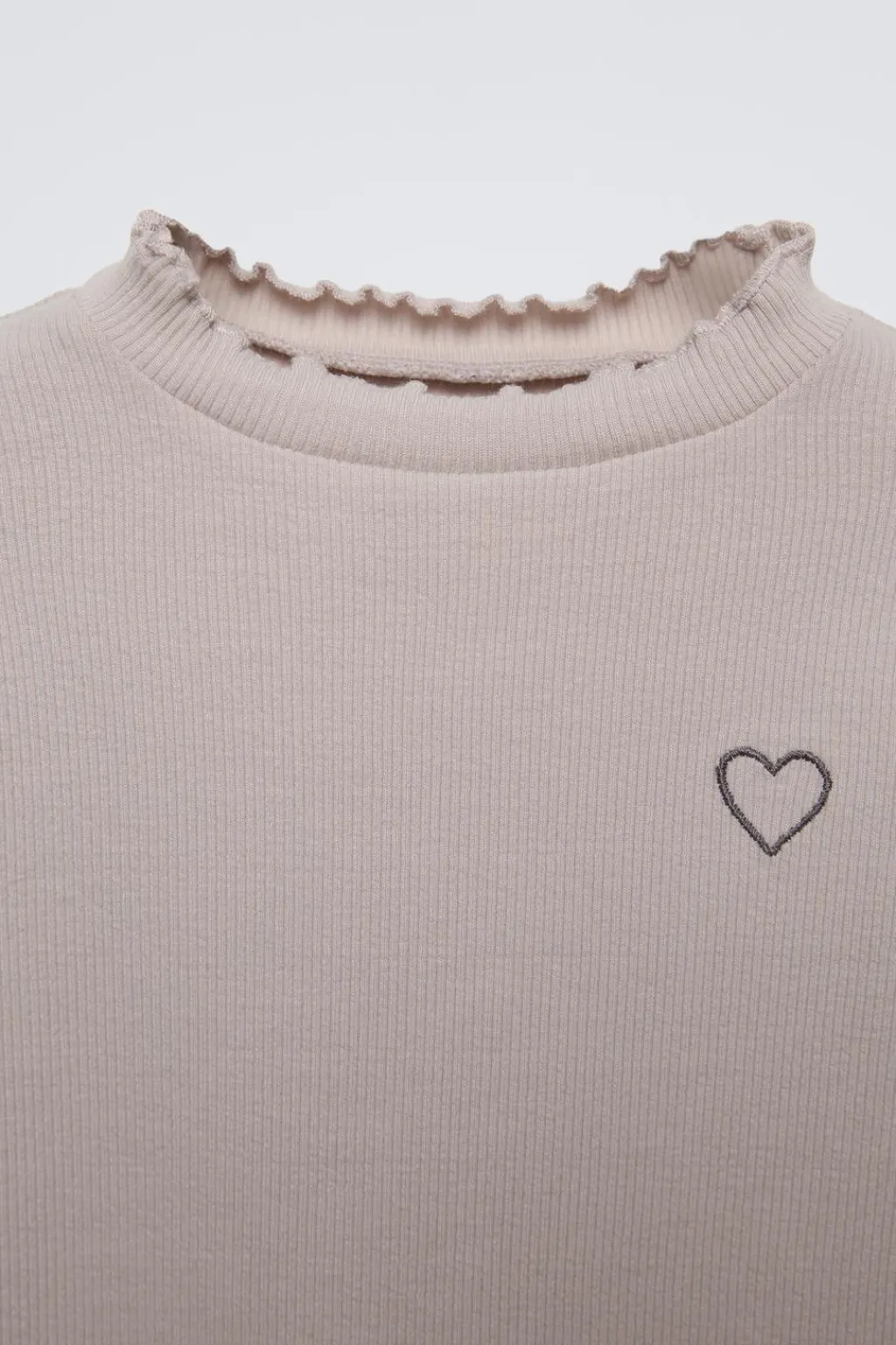 Camiseta rib con cuello perkins y manga larga. Detalle bordado en pechera. Acabados en rizo.