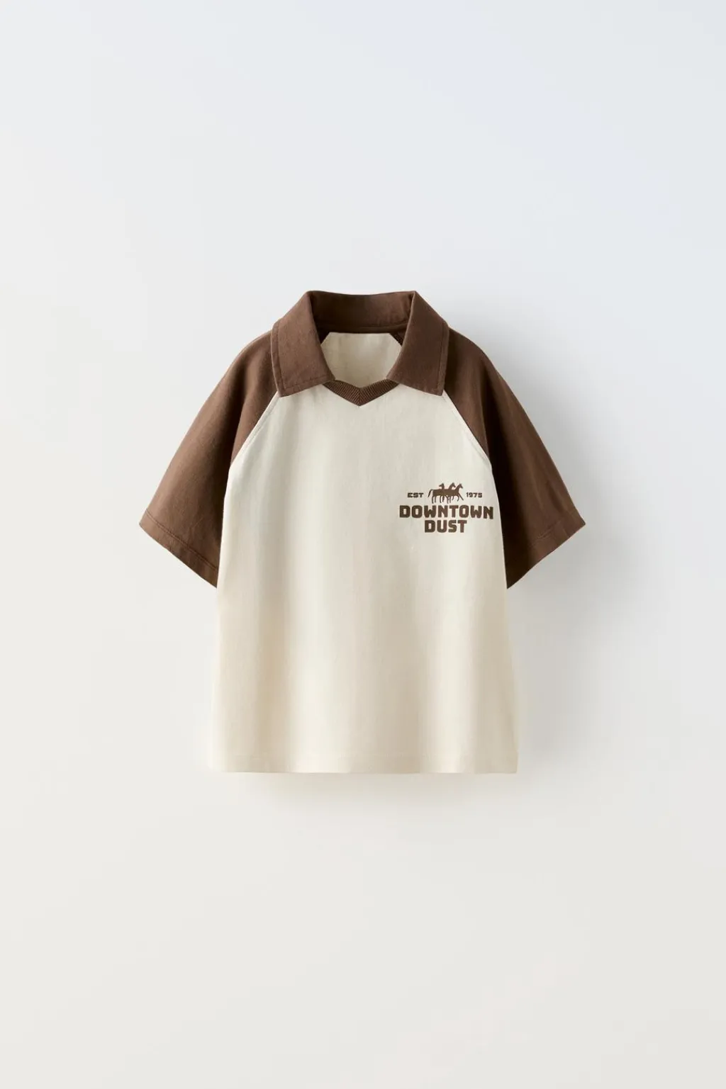 Polo con cuello pico y manga corta con color a contraste. Estampado texto en pechera y espalda.