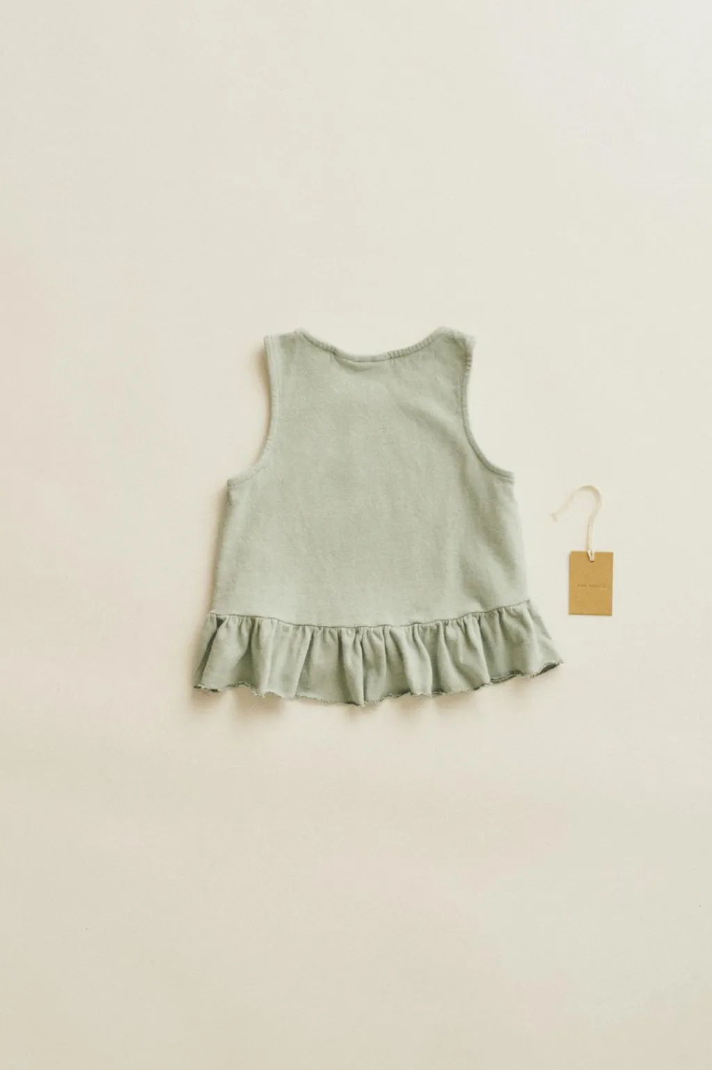 Top con manga sisa confeccionado en algodón y lino. Como detalle tiene un volante en el bajo.