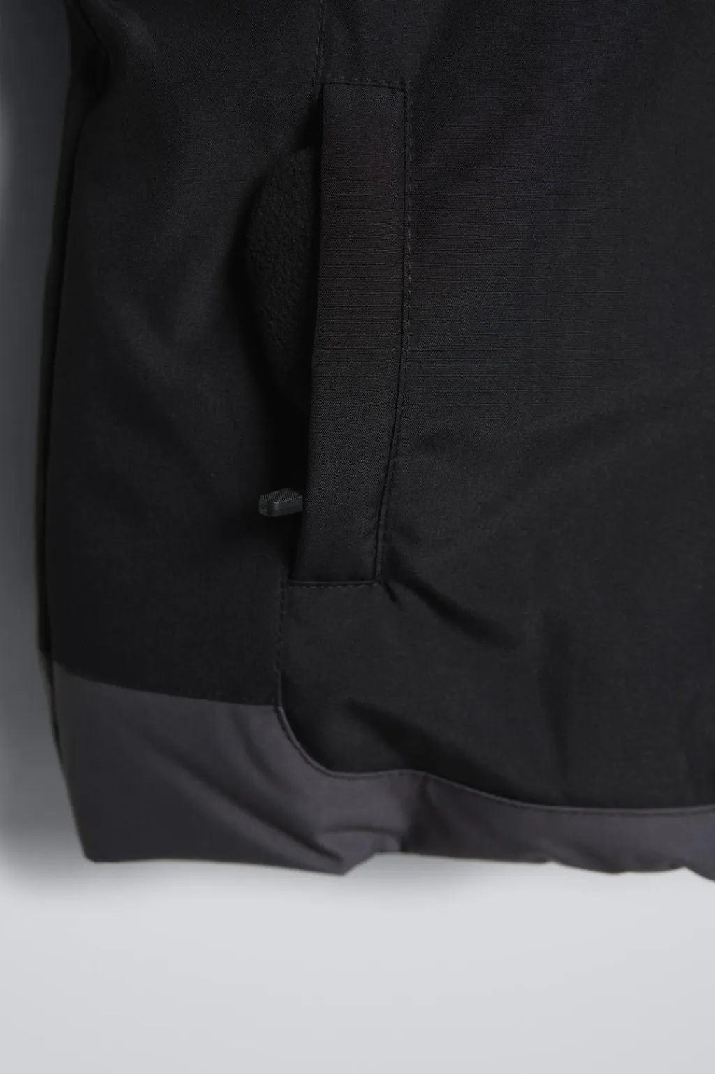 Cazadora con tejido especial repelente al agua y resistente al viento. Con un aislamiento térmico para mantener el calor. Cuello subido y capucha. Manga larga acabada en cierre ajustable por adhesivo y puño interior con abertura para pulgar, detalle bolsillo para forfait con cremallera termosellada. Cierre cremallera frontal termosellada. Bolsillos delanteros y en pechera con cierre cremallera y forro interior en tejido polar. Bajo con faldón interior antinieve desmontable. Forro interior en tejido polar. Detalle bandas reflectante en bolsillos y espalda.
