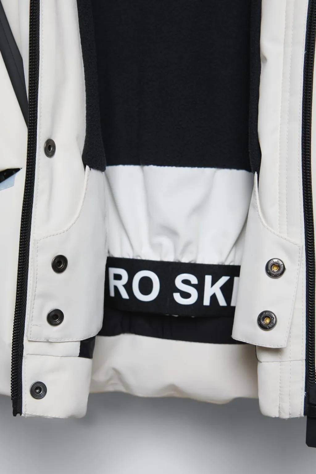 Cazadora con tejido especial repelente al agua y resistente al viento. Con un aislamiento térmico para mantener el calor. Cuello subido y capucha. Manga larga acabada en cierre ajustable por adhesivo y puño interior con abertura para pulgar, detalle bolsillo para forfait con cremallera termosellada. Cierre cremallera frontal termosellada oculta por solapa y cierre con botones tipo presión. Bolsillos delanteros y en pechera con cierre cremallera termosellada y tejido interior con forro polar. Bajo con faldón interior antinieve desmontable. Forro interior en tejido polar. Detalle bandas reflectante en bolsillos y espalda.