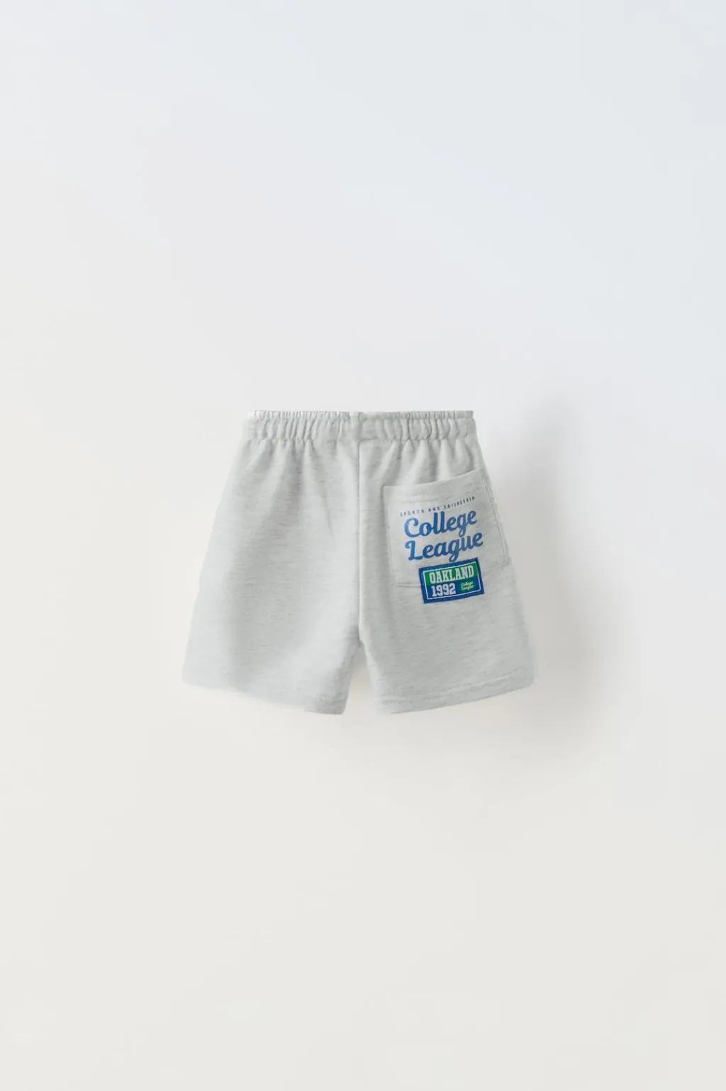 Bermuda con cinturilla elástica y cordones ajustables. Estampado en delantero. Bolsillo tipo plastrón con aplique etiqueta y estampado en espalda.