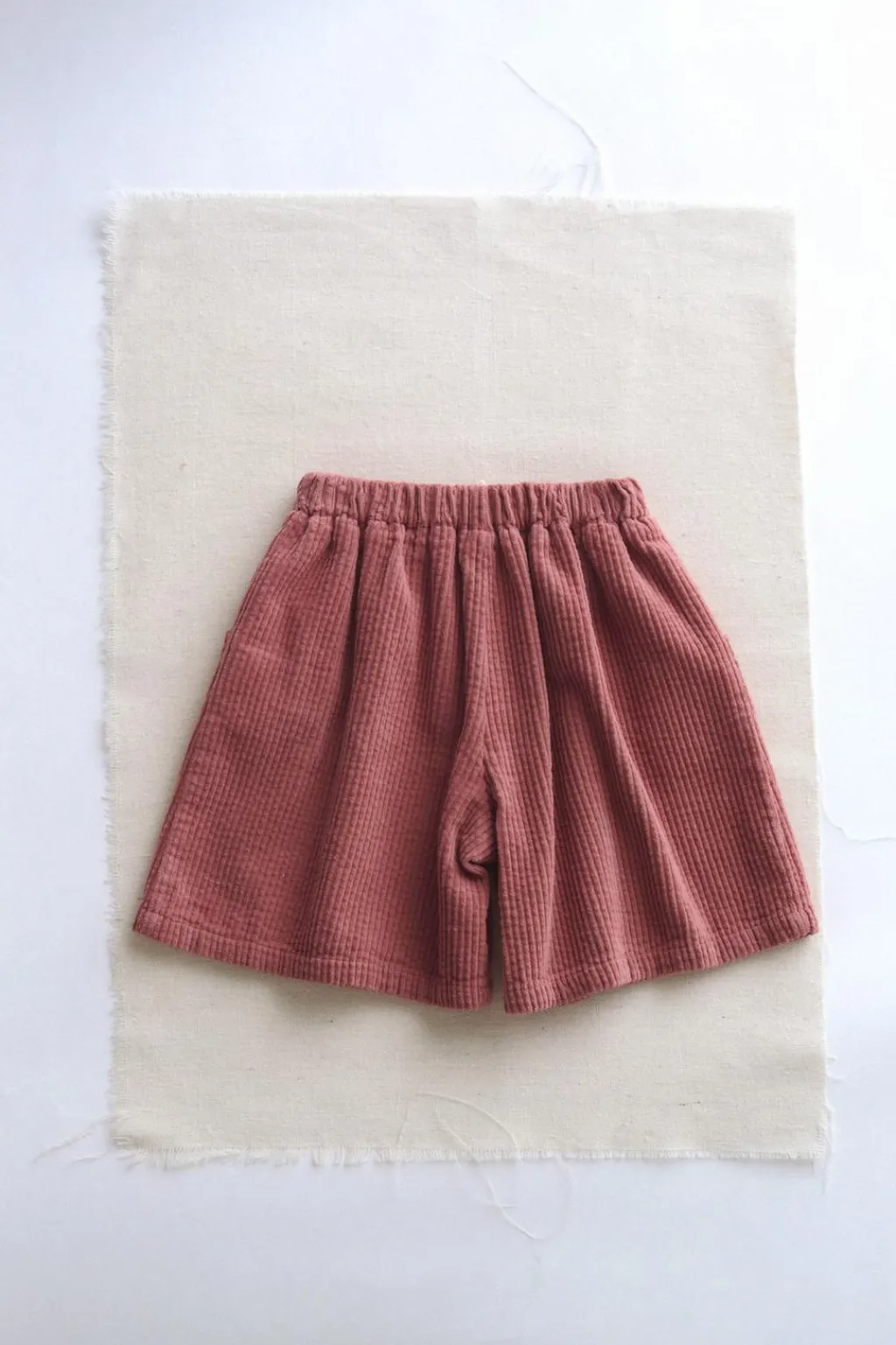 Bermuda amplia de pana confeccionada en un tejido de algodón. La cinturilla elástica le aporta comodidad a la prenda.