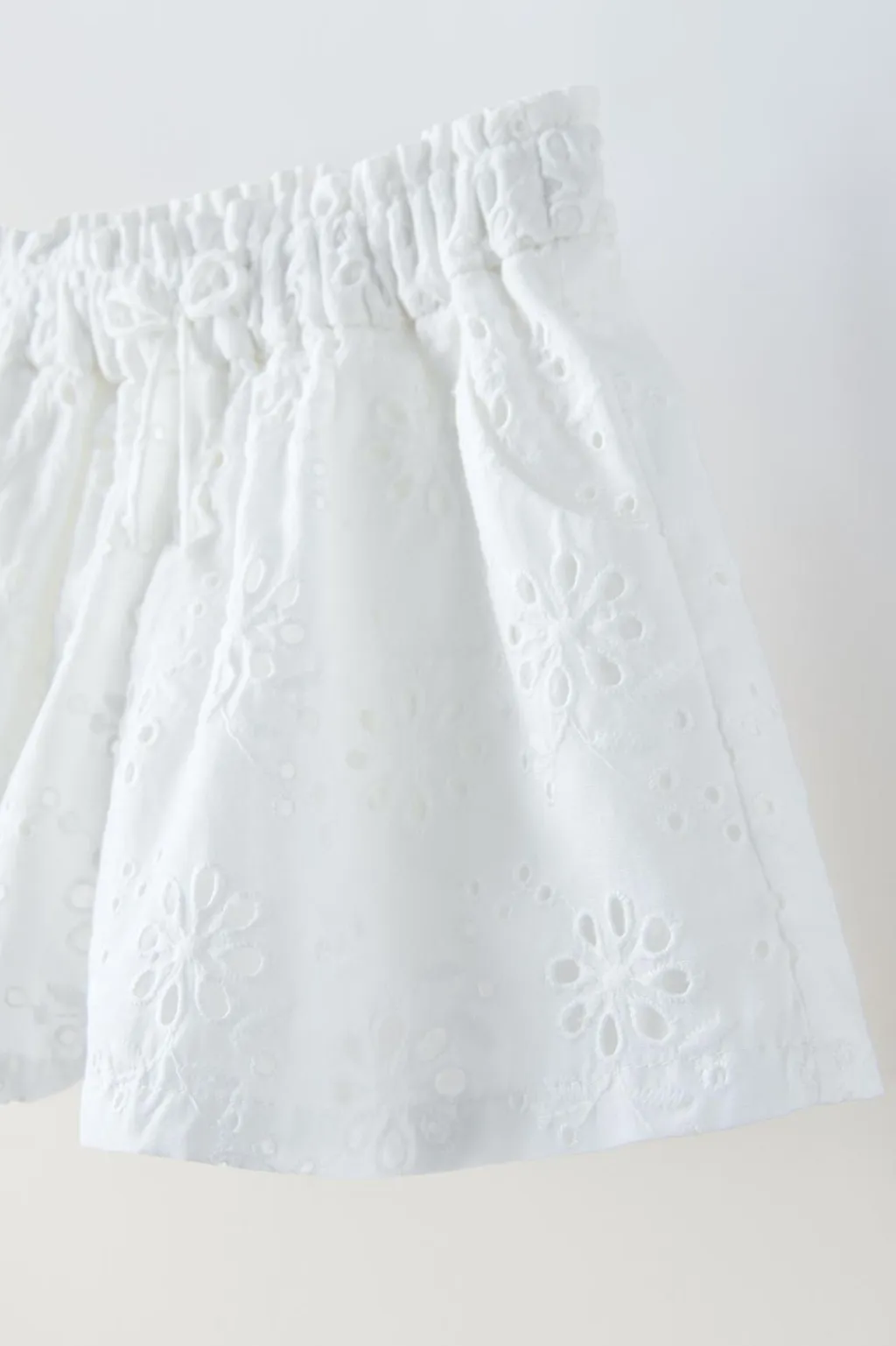 Bermuda con cinturilla elástica y aplique cordón frontal. Detalle bordado flores all over.