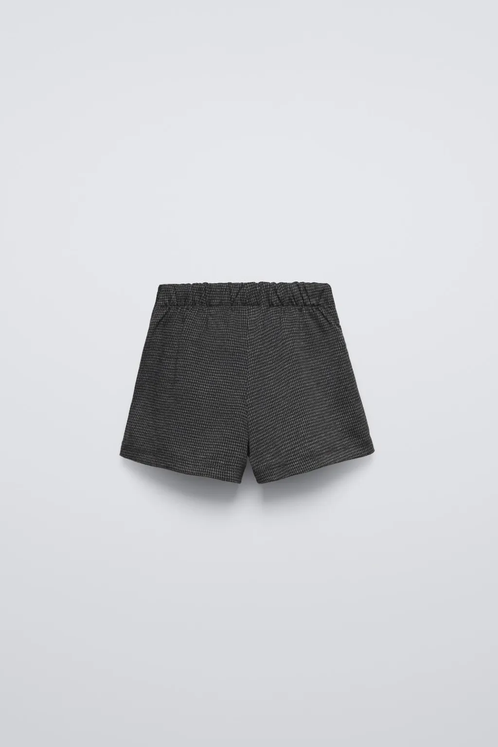 Falda tipo bermuda con cinturilla elástica. Aplique botones en lateral y tablas en delantero.