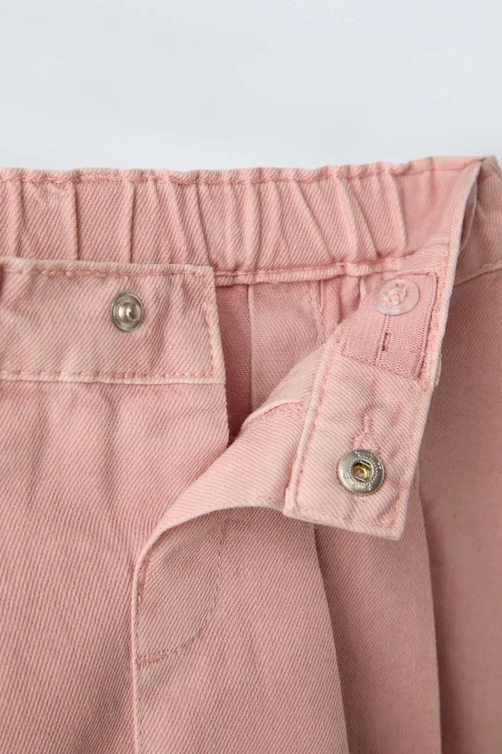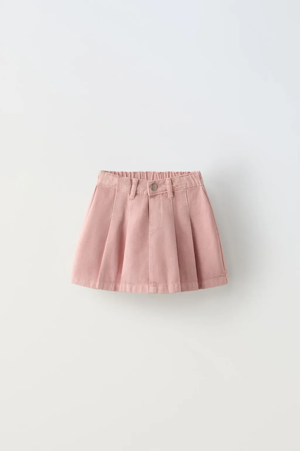 Falda con cinturilla elástica y cierre botón frontal. Detalle tablas en delantero y espalda.