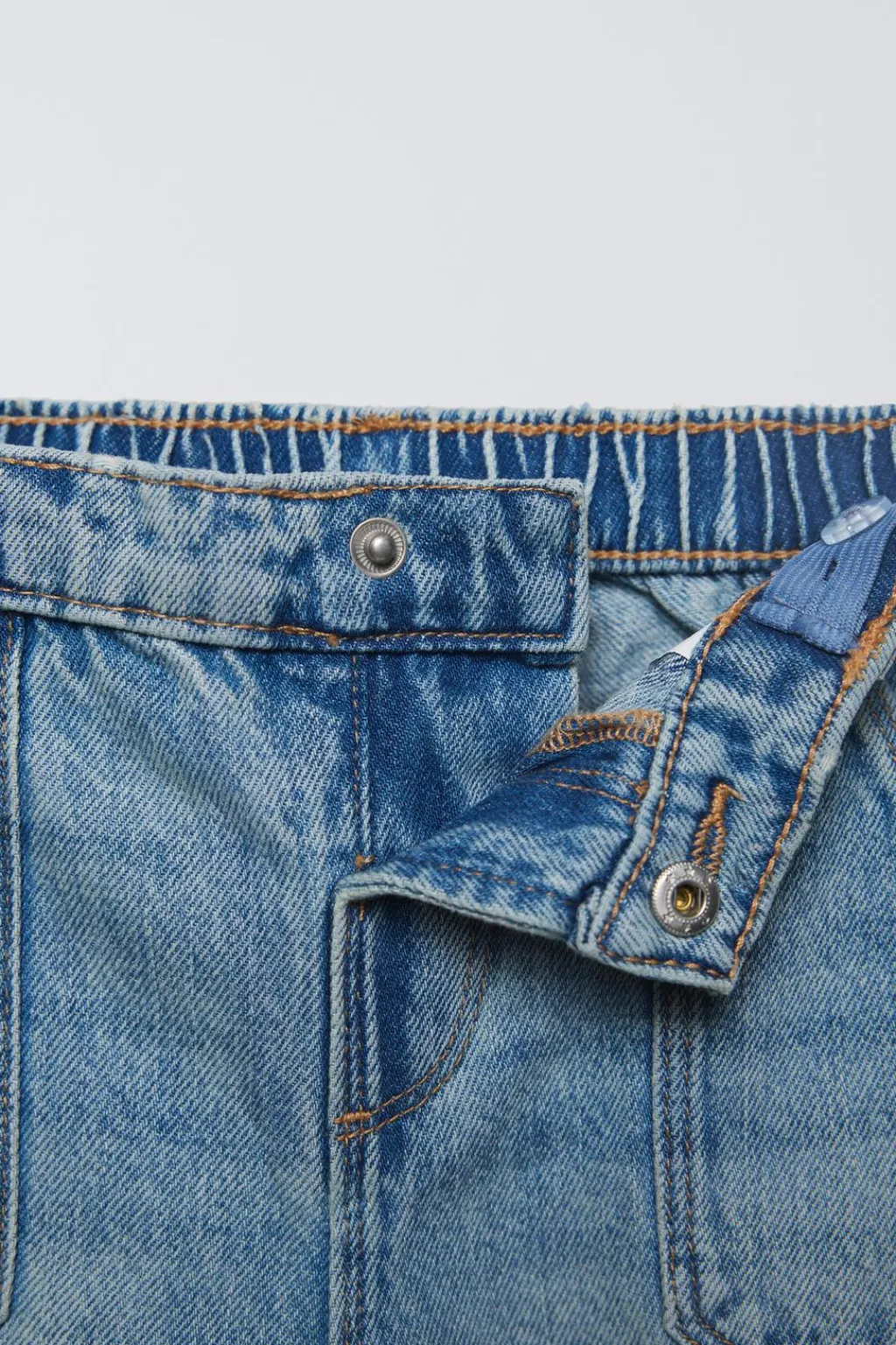 Jeans tipo culotte con cinturilla elástica y cierre botón frontal. Bolisillos tipo plastrón en delantero y espalda.