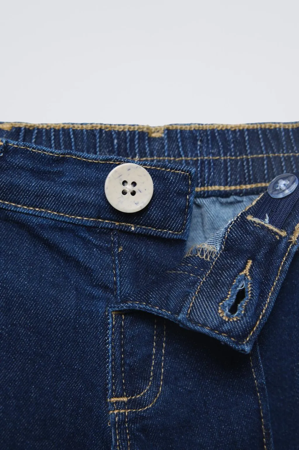 Jeans con cinturilla interior ajustable y cierre botón frontal. Bolsillos de tipo plastrón en espalda.