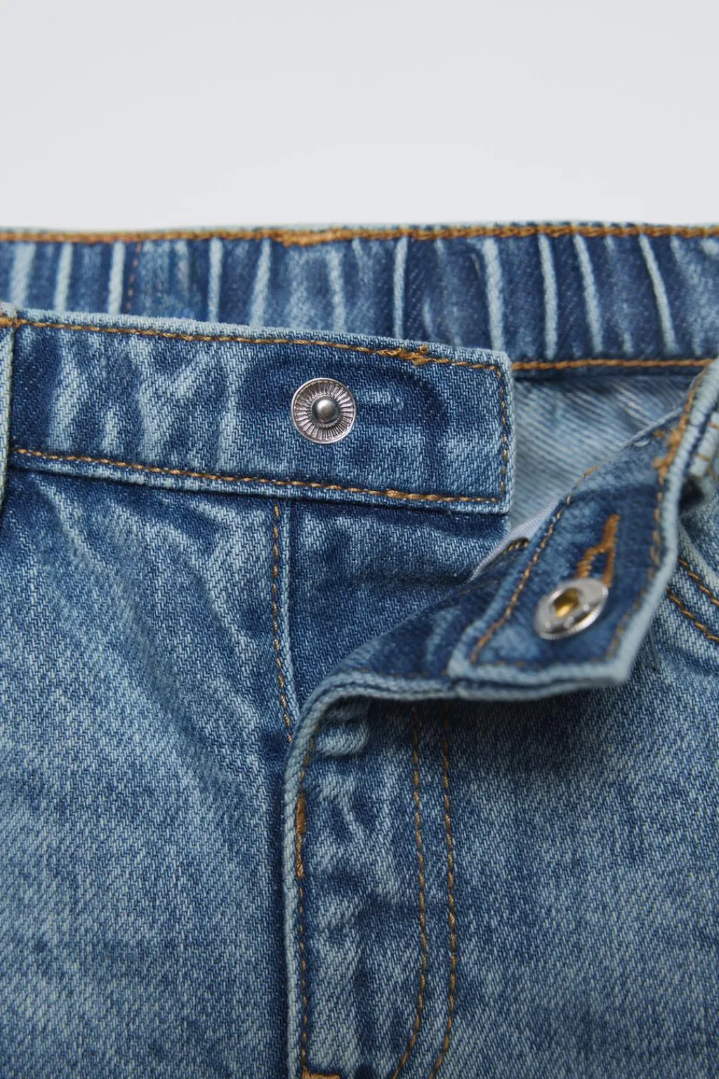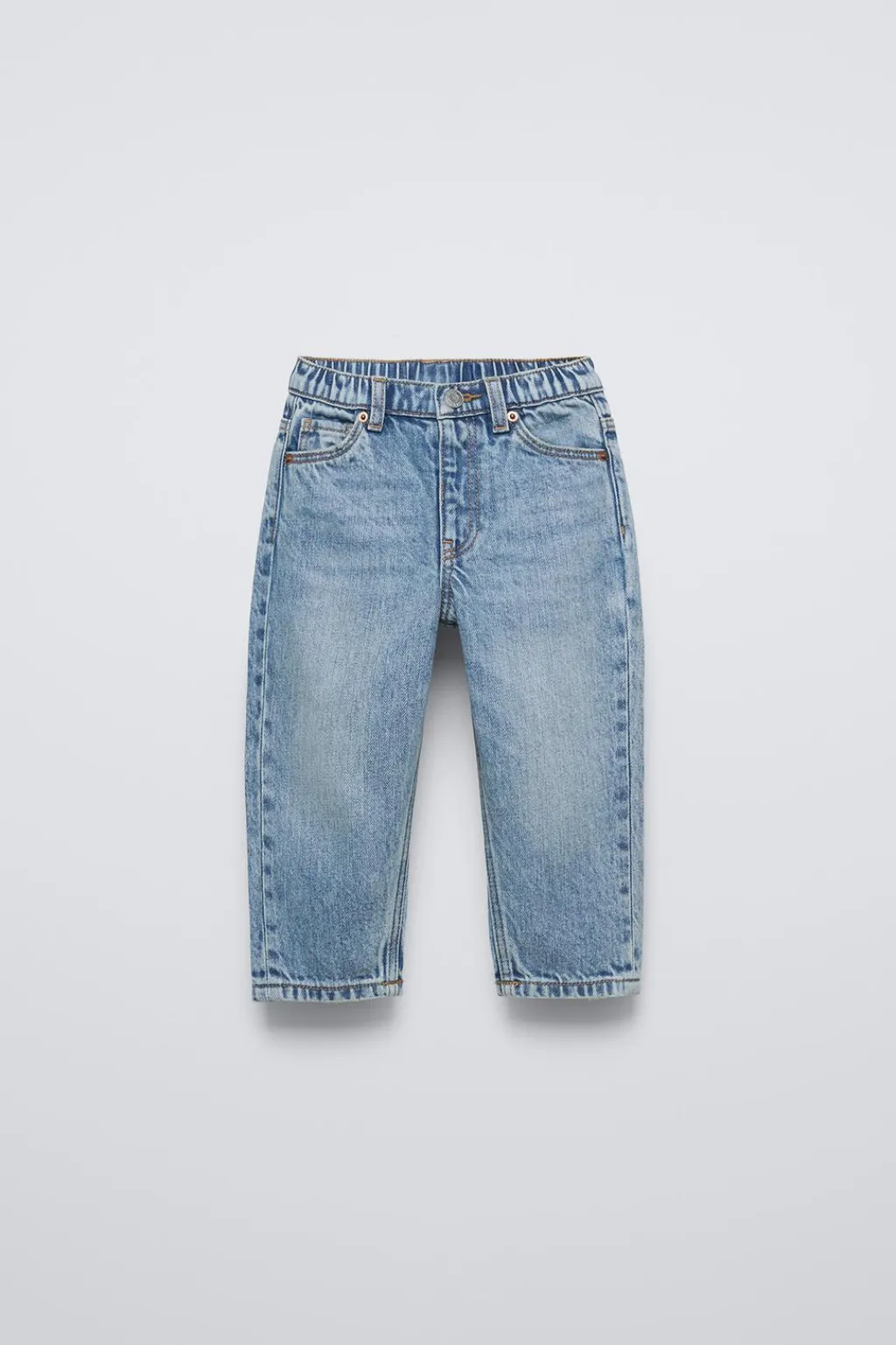 Jeans original fit con cinturilla elástica y cierre botón frontal. Bolsillos en delantero y tipo plastrón en espalda.