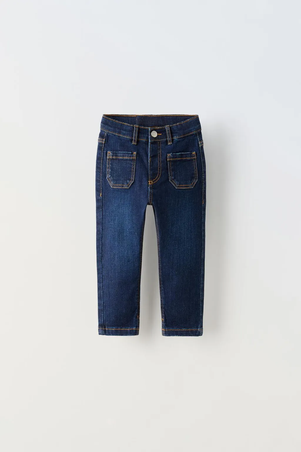 Jeans con cinturilla interior ajustable y cierre botón frontal. Bolsillos de tipo plastrón en delantero y espalda.
