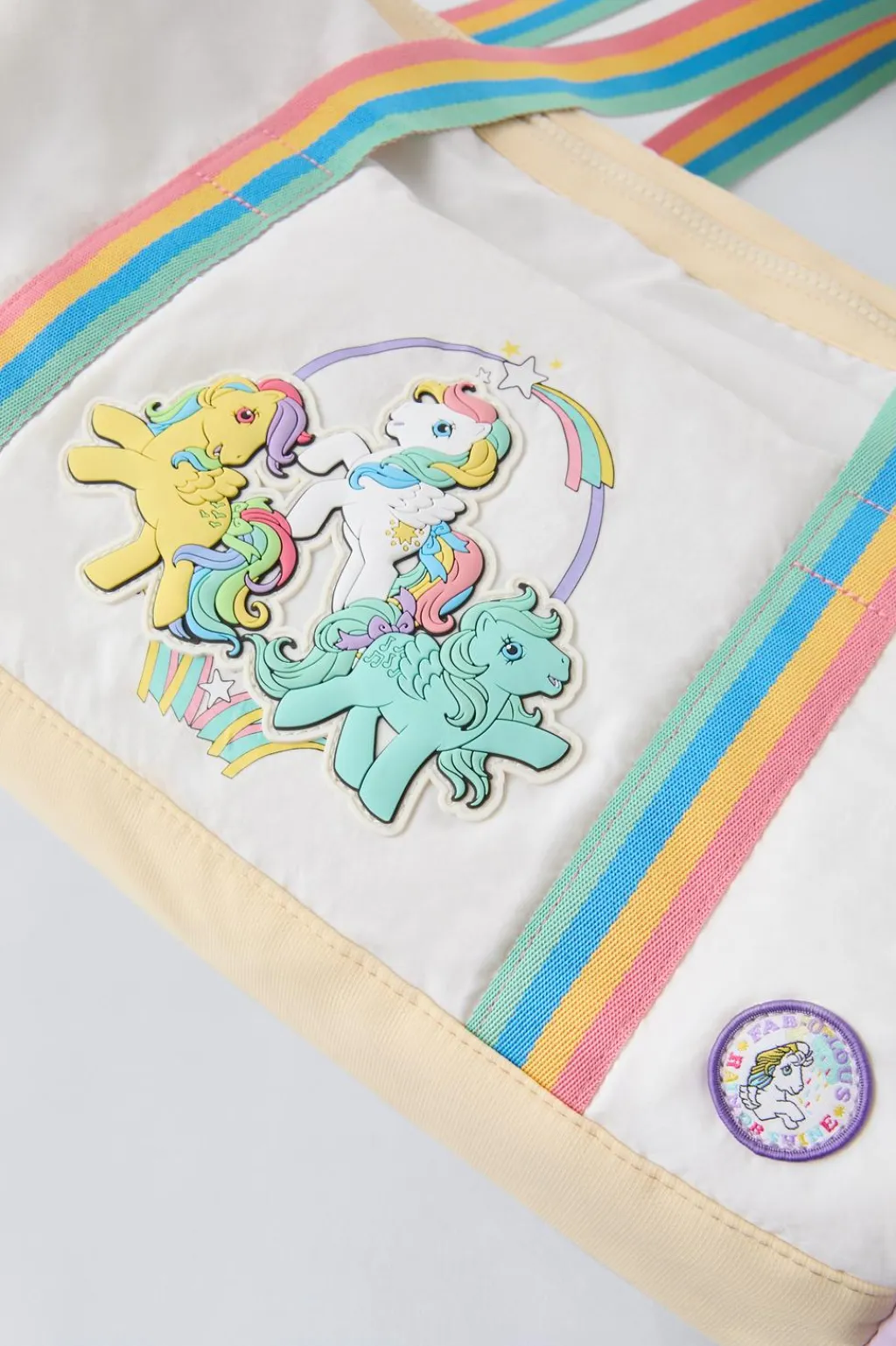 Bolso tipo bowling MY LITTLE PONY®. Compartimento principal con cierre mediante cremallera. Cuenta con dos bolsillos laterales con cierre mediante cremallera y un bolsillo interior sin cierre. Doble asa de mano y asa de hombro ajustable y extraíble.