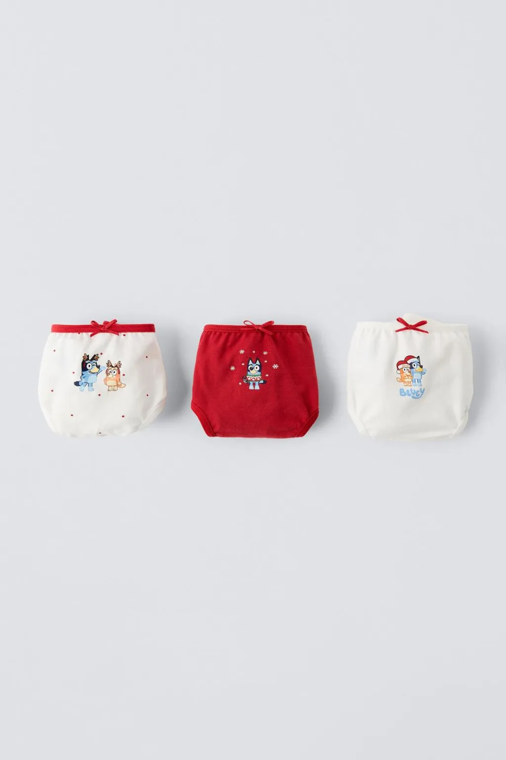 Pack de tres braguitas con cinturilla elástica y aplique lazo en delantero. Estampado BLUEY © LUDO STUDIO.