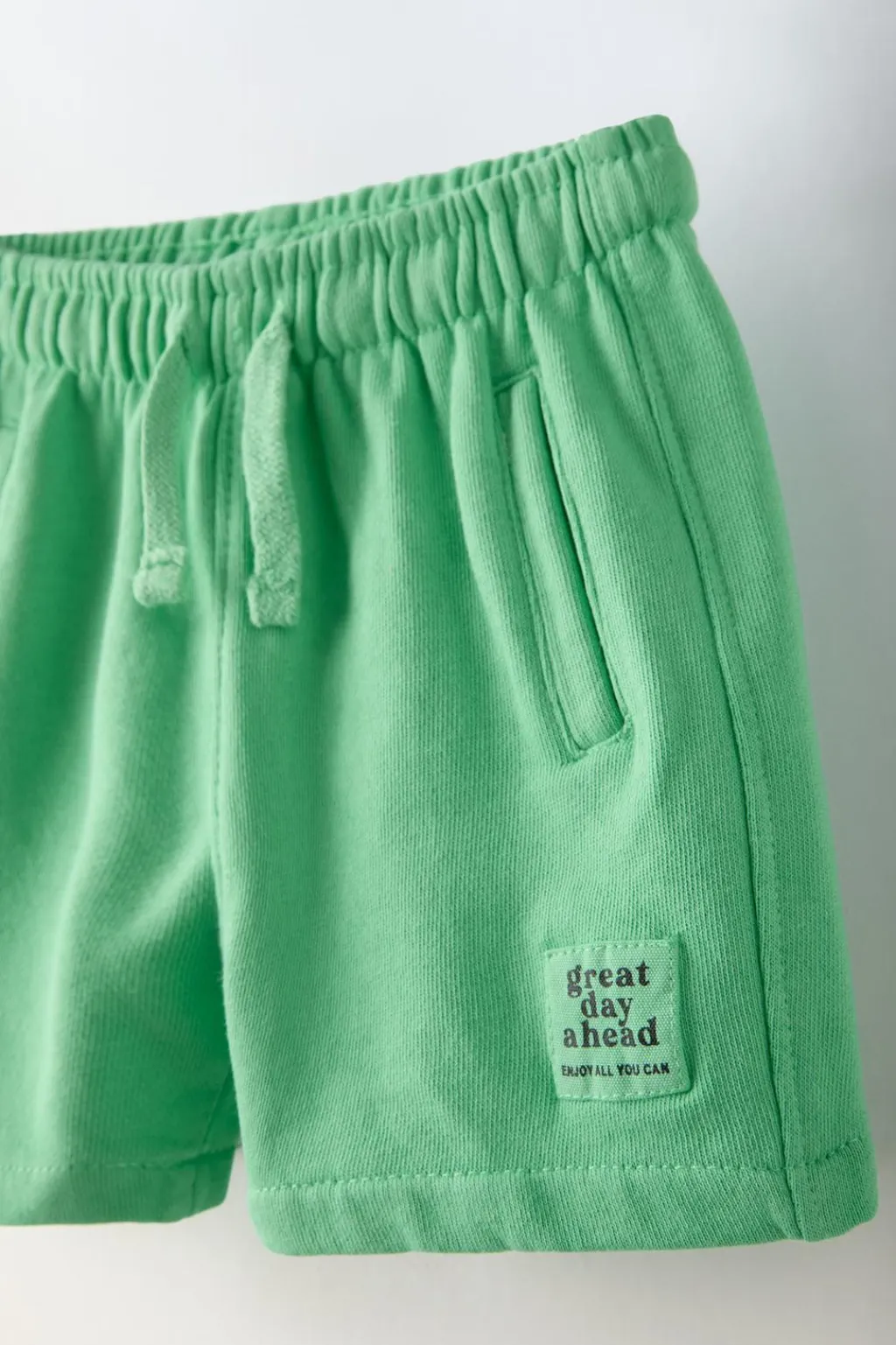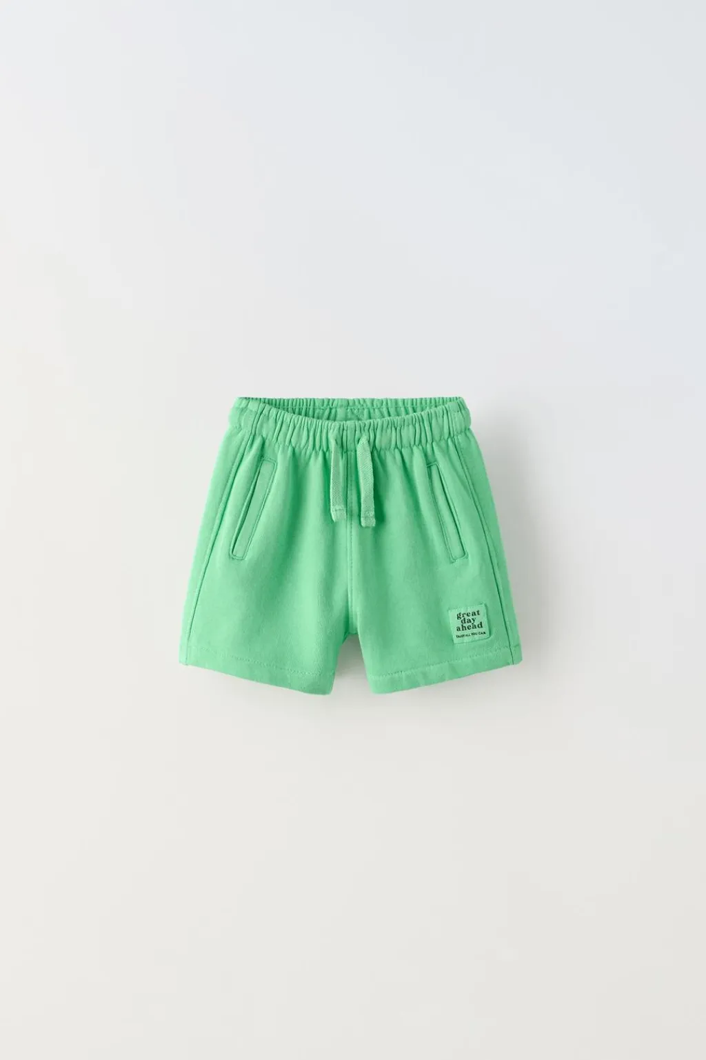 Bermuda con cinturilla elástica y cordones ajustables frontal. Bolsillos delanteros con detalle vivo y de tipo plastrón en espalda. Aplique etiqueta en bajo.