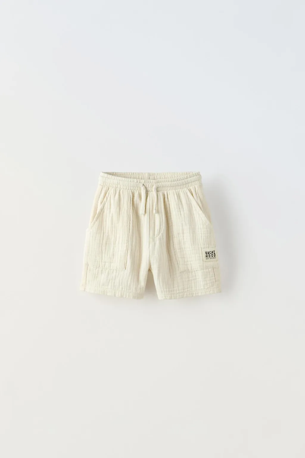 Bermuda con cinturilla elástica y cordones ajustables. Bolsillos tipo plastrón con aplique etiqueta en delantero. Tejido combinado en espalda.