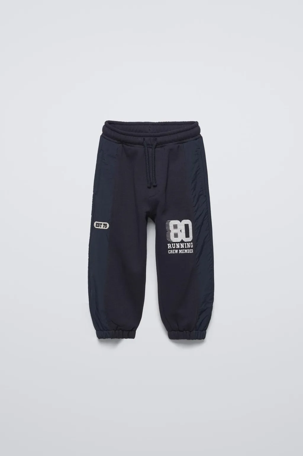 Pantalón tipo jogger con cinturilla elástica y cordones ajustables en delantero. Bajo acabados en goma. Estampado y detalle bordado en pernera.
