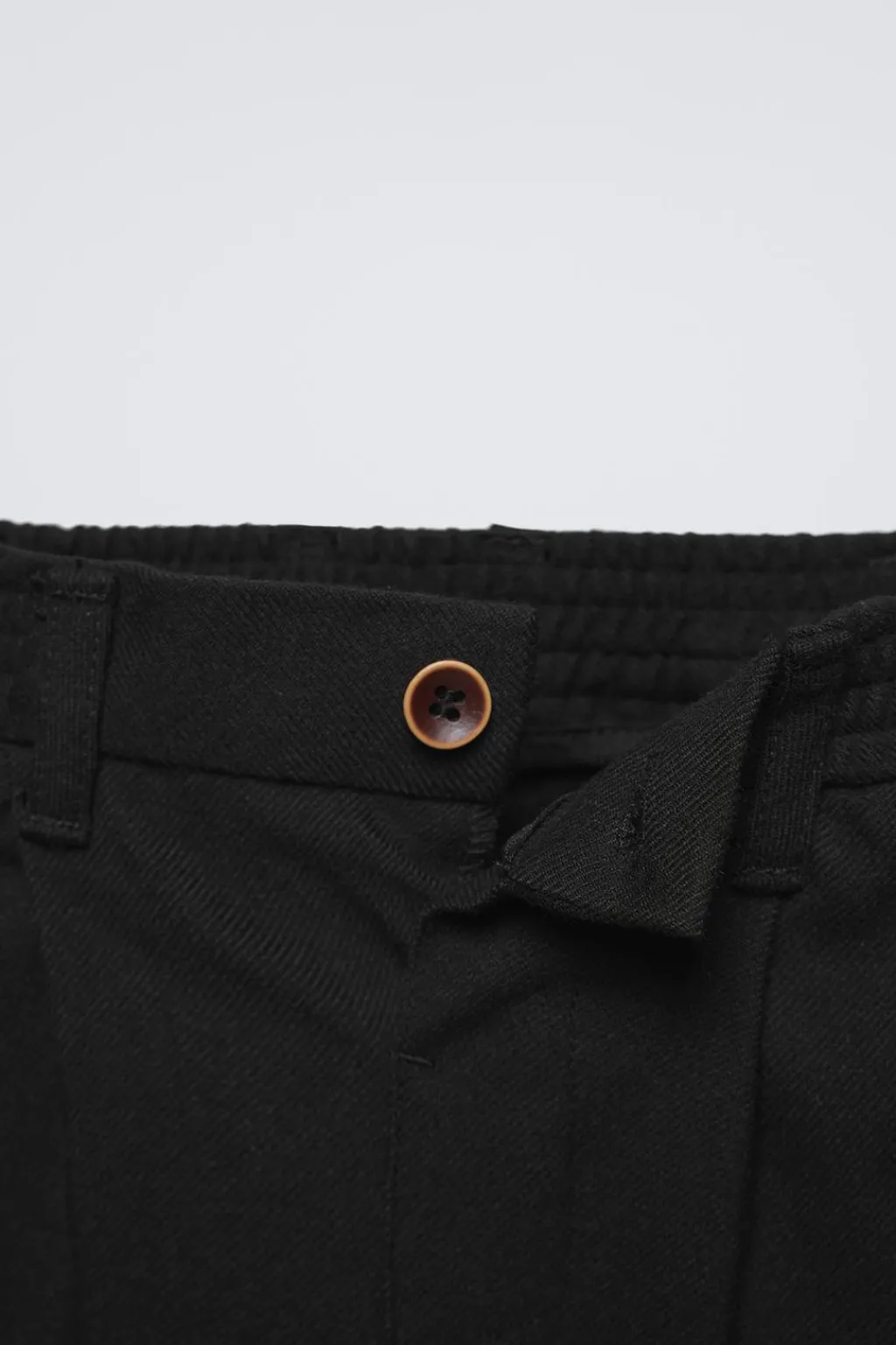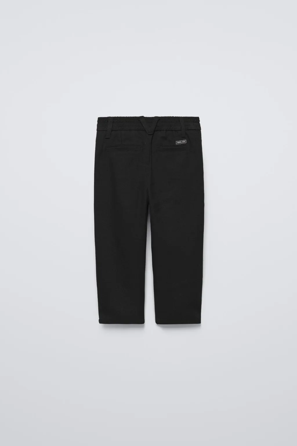 Pantalón con cinturilla elástica y cierre botón frontal. Bolsillos en delantero y con detalle vivo en espalda. Aplique etiqueta bordada en espalda y pliegues en delantero.