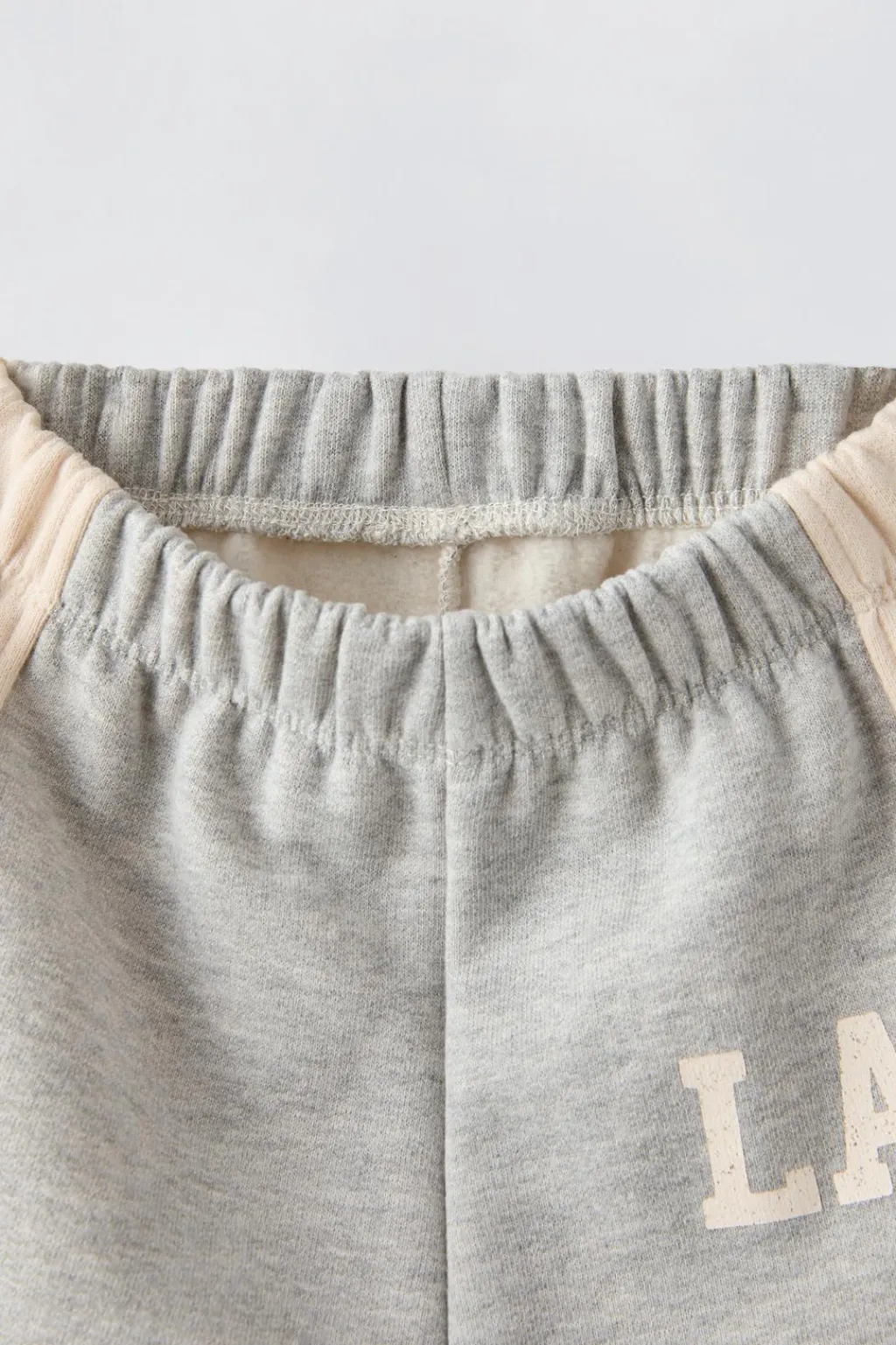 Pantalón con cinturilla elástica. Detalle bandas en laterales y estampado texto en delantero. Bajo acabado en goma.