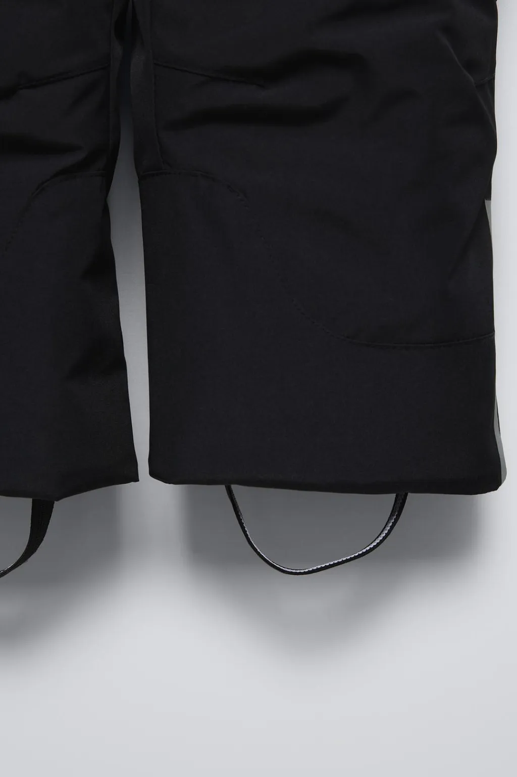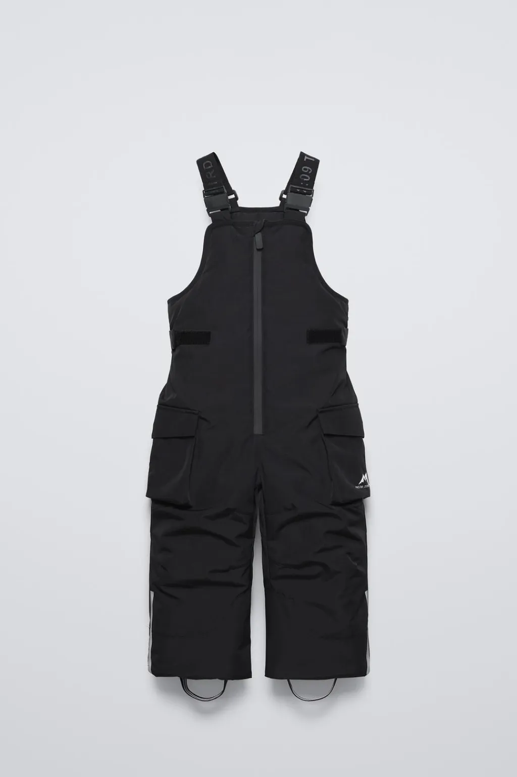 Peto con tejido especial repelente al agua y resistente al viento. Con un aislamiento térmico para mantener el calor. Cuello recto con tirantes elásticos y cierre frontal de hebilla. Cierre cremallera frontal termosellada. Detalle goma elástica en cintura y cierres adhesivos ajustables. Bolsillos de tipo plastrón en laterales con tapeta y cierre botón presión. Bajo acabado en puño interior elástico para introducir dentro del calzado y evitar la entrada de nieve y frío. Forro interior en tejido polar. Detalle bandas reflectantes en laterales.