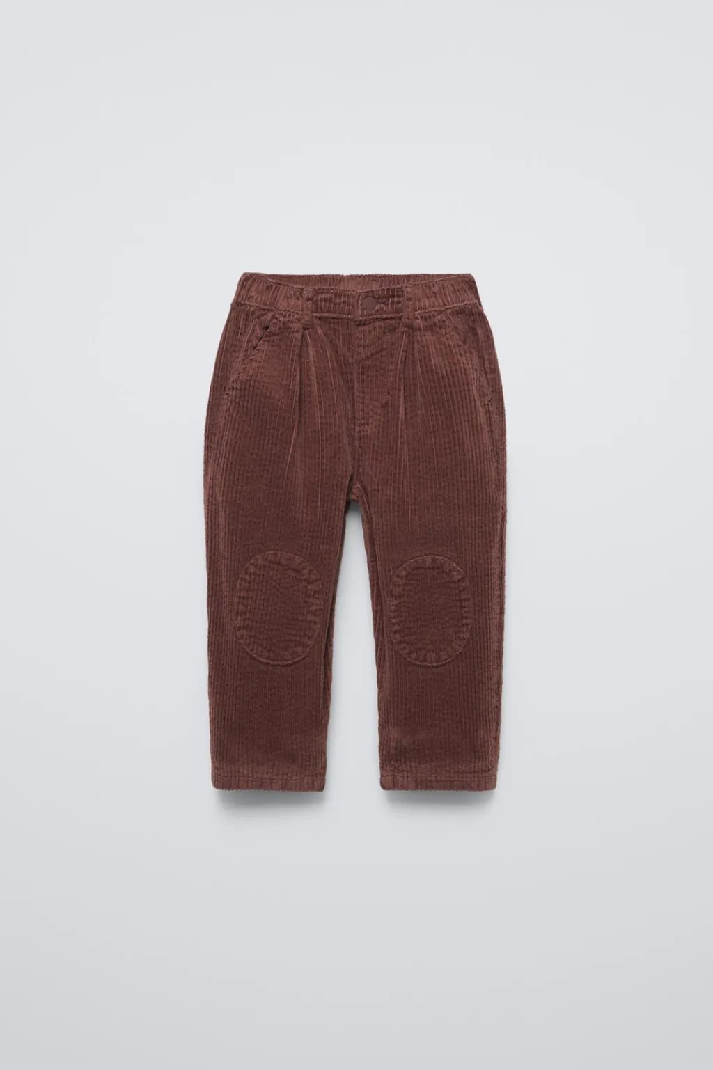 Pantalón de pana con cinturilla elástica y cierre botón tipo presión. Cierre con cremallera a partir de la talla 4. Bolsillos delanteros y de tipo plastrón en espalda. Aplique rodilleras combinadas con color a tono.