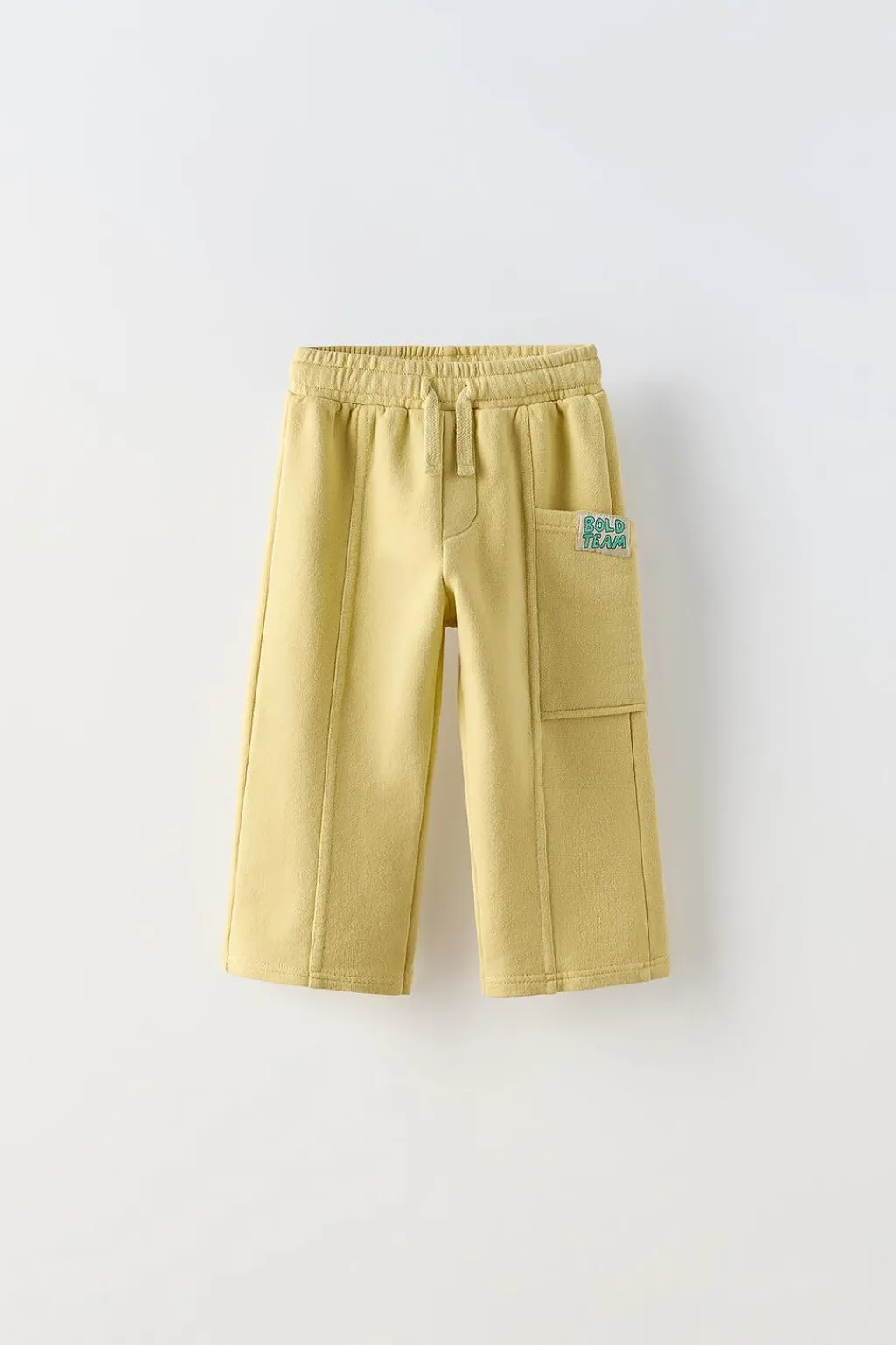 Pantalón con cinturilla elástica y cordones ajustables. Bolsillo tipo plastrón con aplique etiqueta en lateral y espalda.