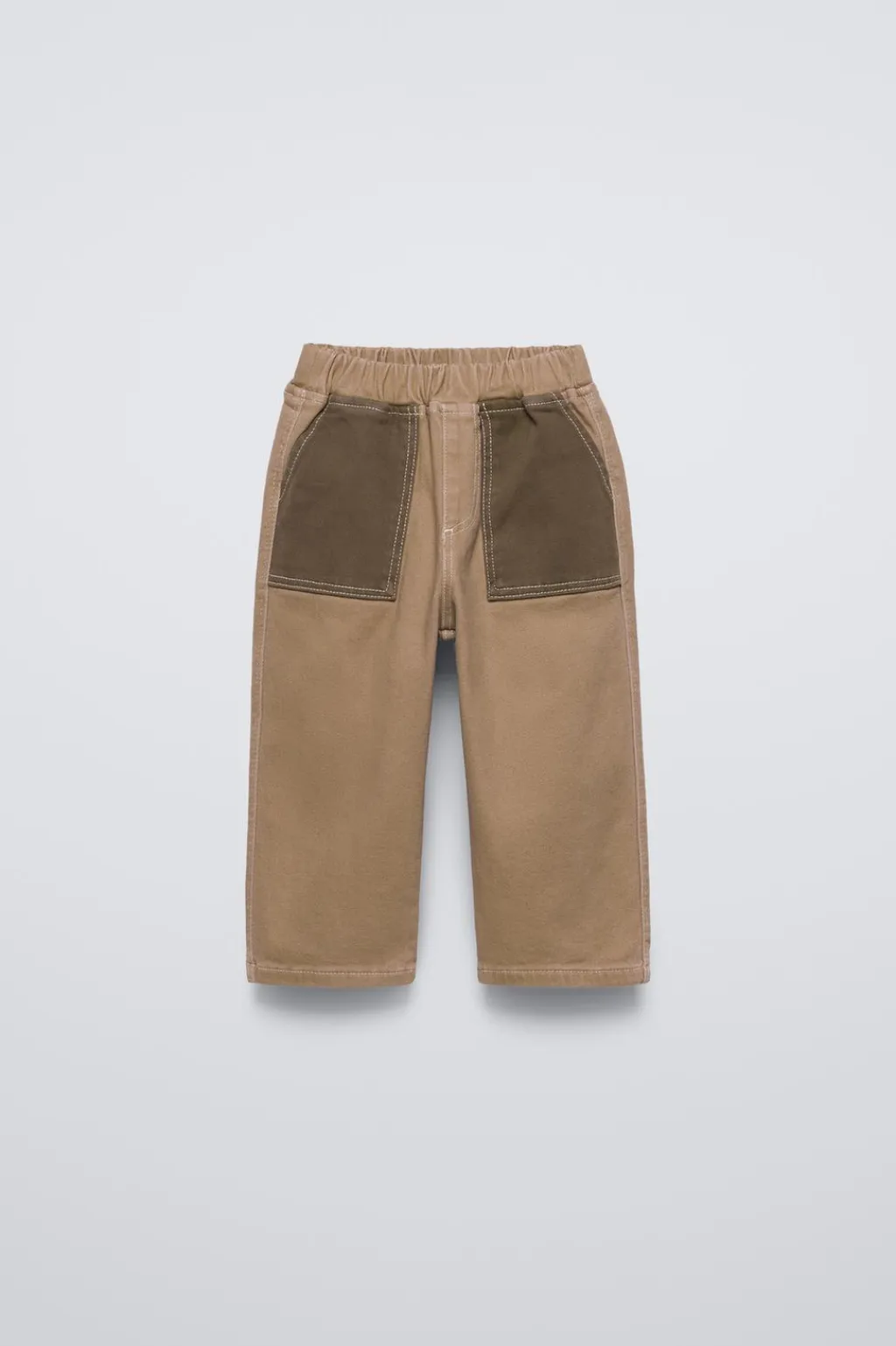 Pantalón con cinturilla elástica. Bolsillos de tipo plastrón en delantero y espalda con color a contraste. Tejido tacto suave.