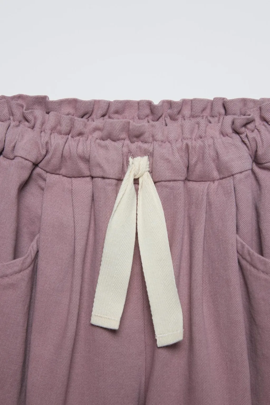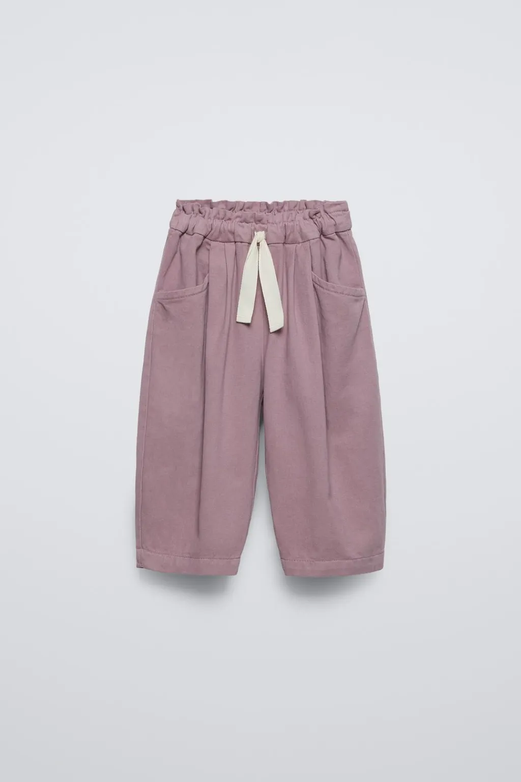 Pantalón con cinturilla elástica y aplique cordón frontal. Detalle pinzas y bolsillos en delantero.