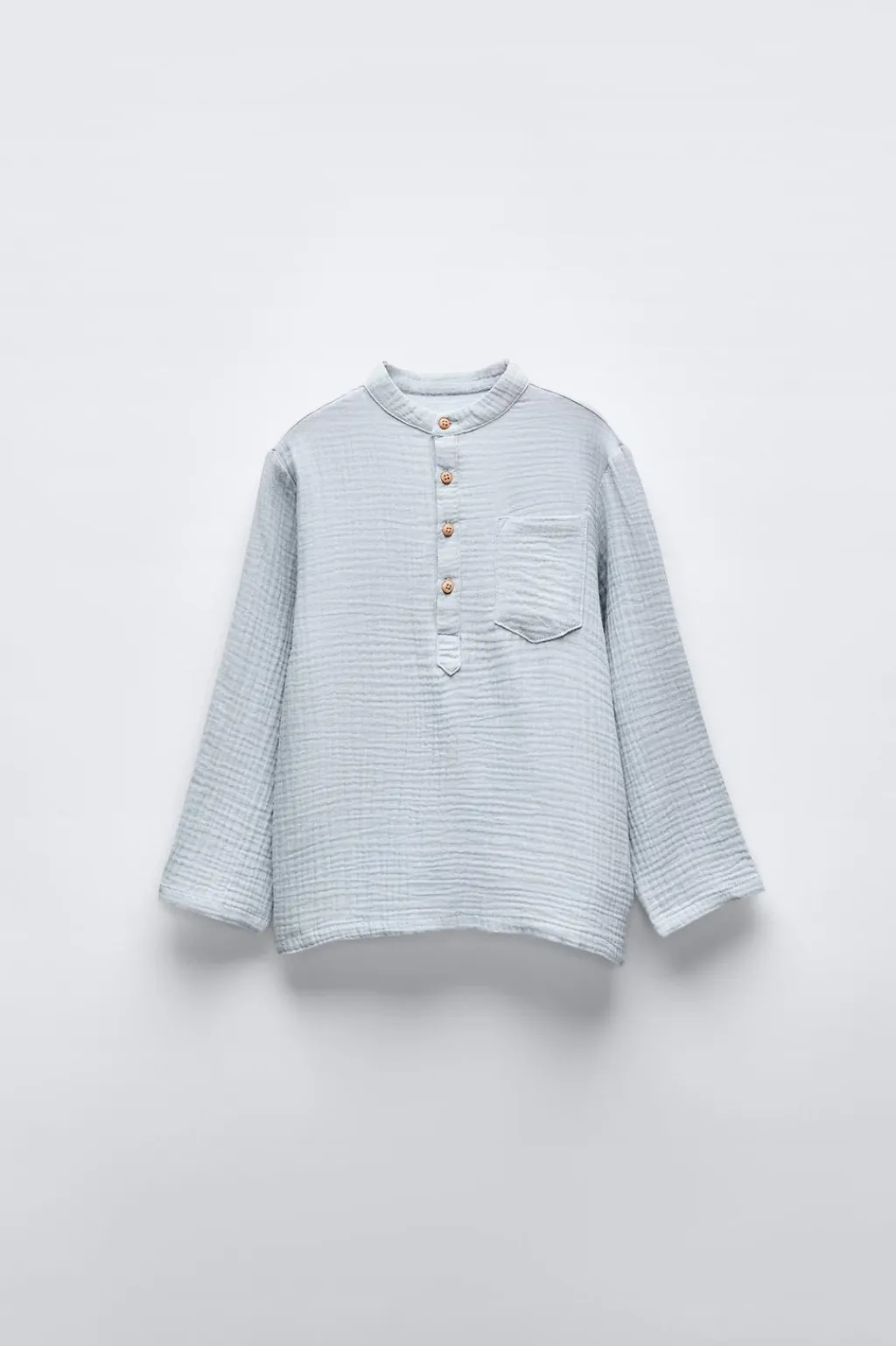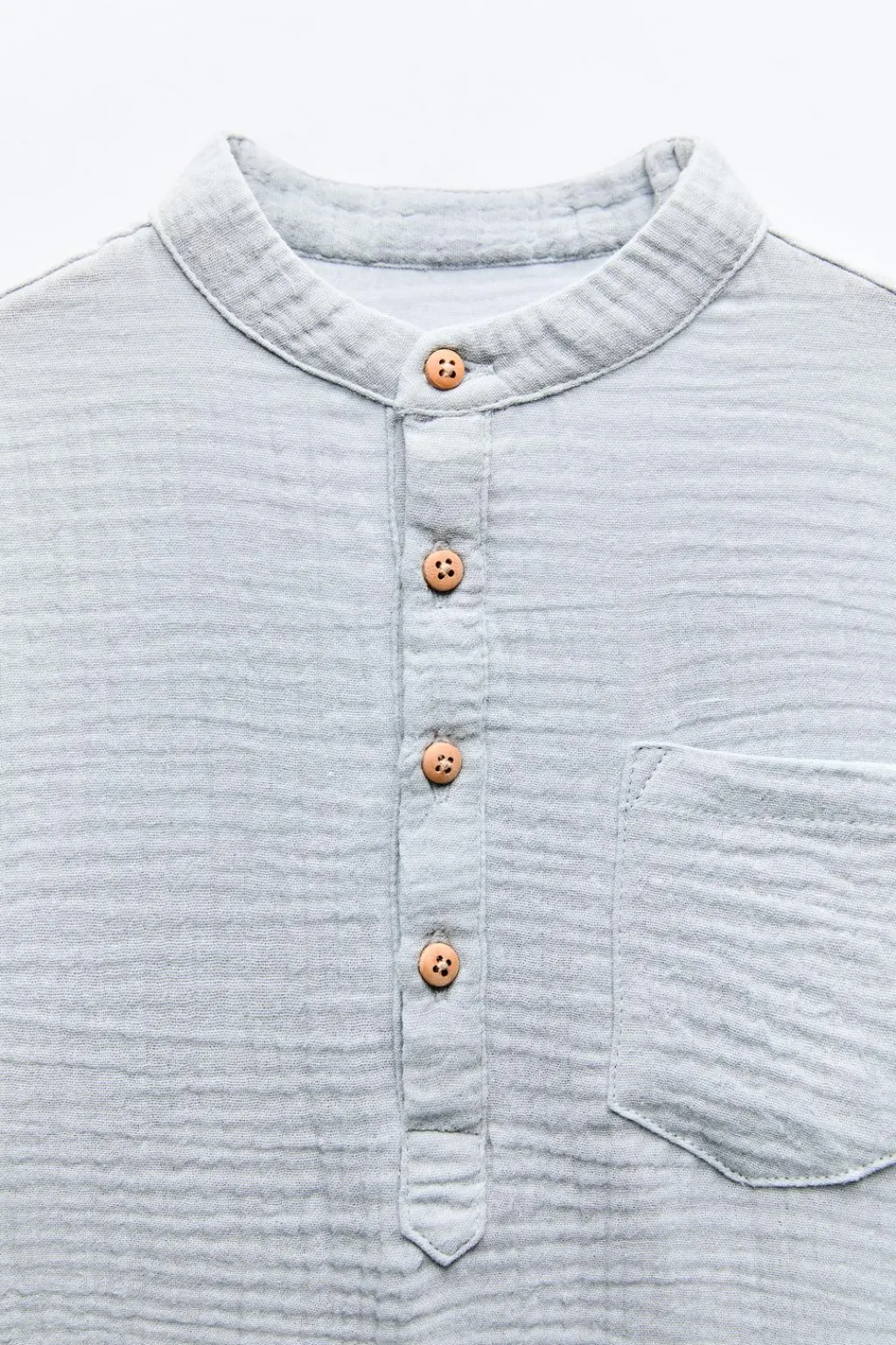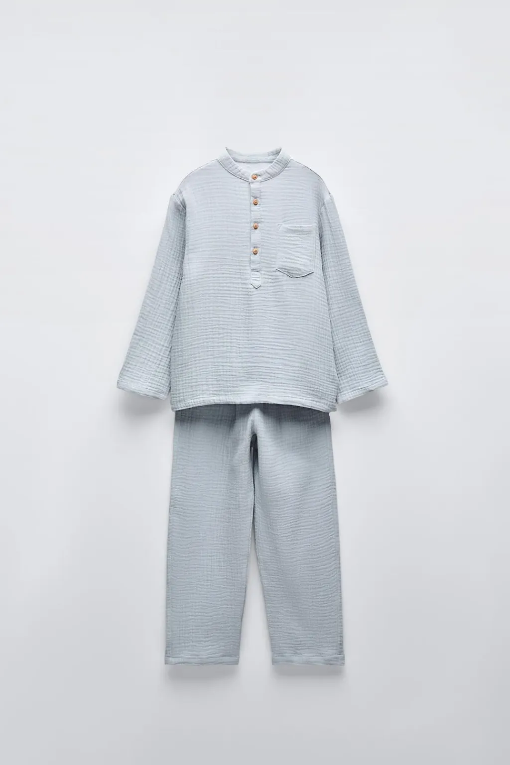 Pijama de dos piezas. Camiseta con cuello redondo y manga larga. Cierre con botones en canesú. Bolsillo tipo plastrón en pechera. Pantalón con cinturilla elástica.