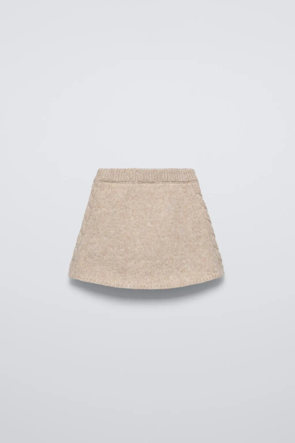 Falda de punto con cinturilla elástica. Detalle laterales en ochos.