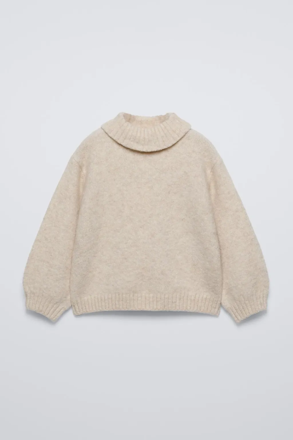 Jersey de punto liso con cuello vuelto y manga larga. Acabados en rib.