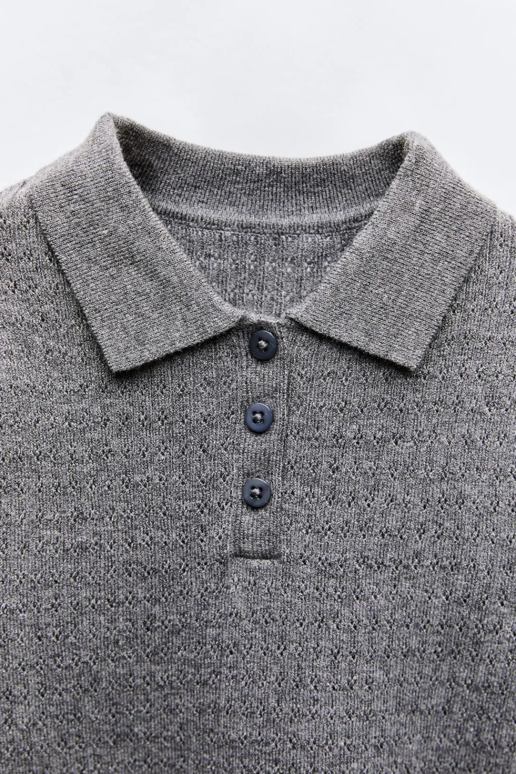Jersey con cuello polo y manga larga. Cierre con botones en canesú.