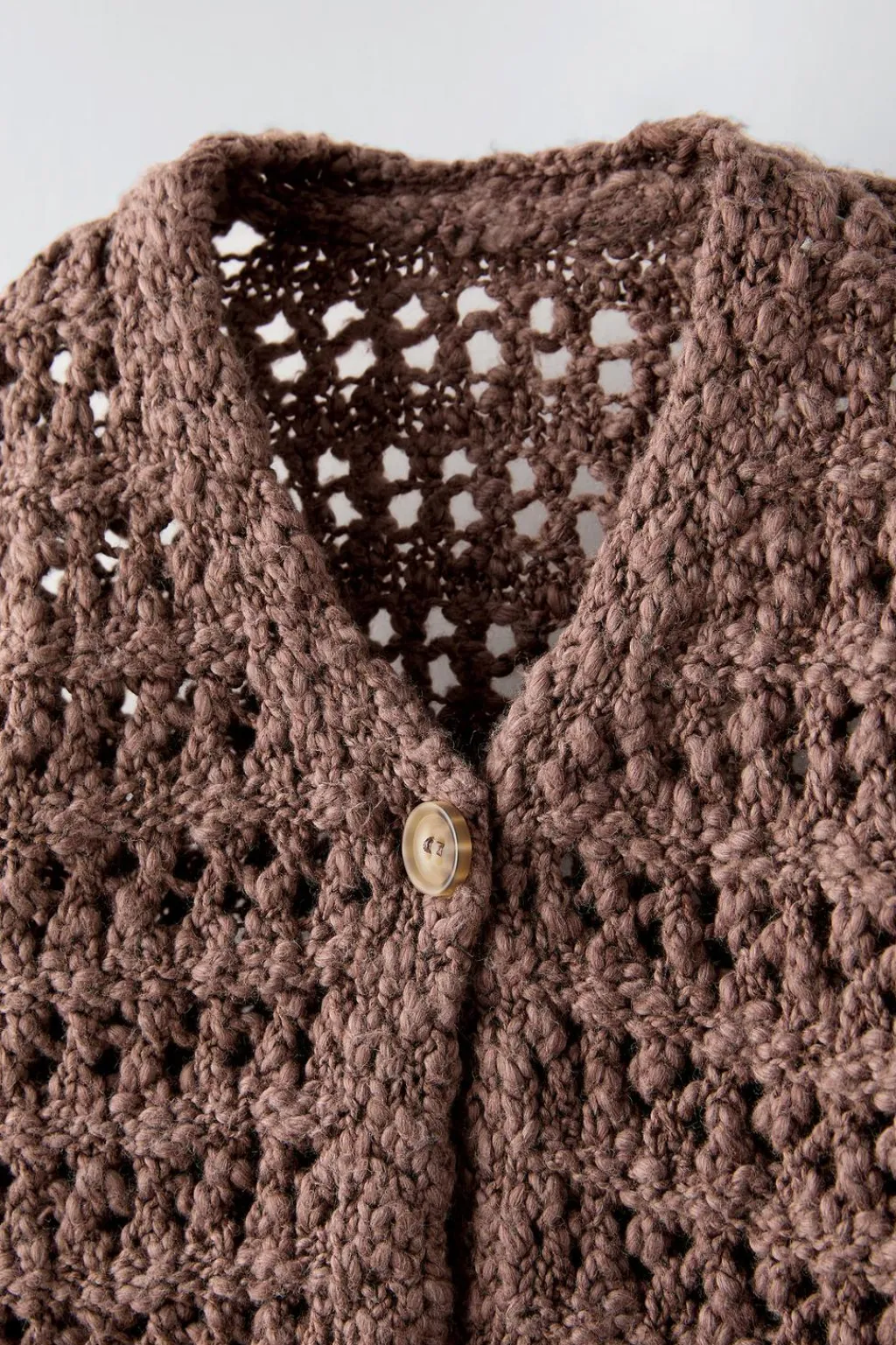 Chaqueta con cuello redondo y manga larga. Cierre con botón frontal.