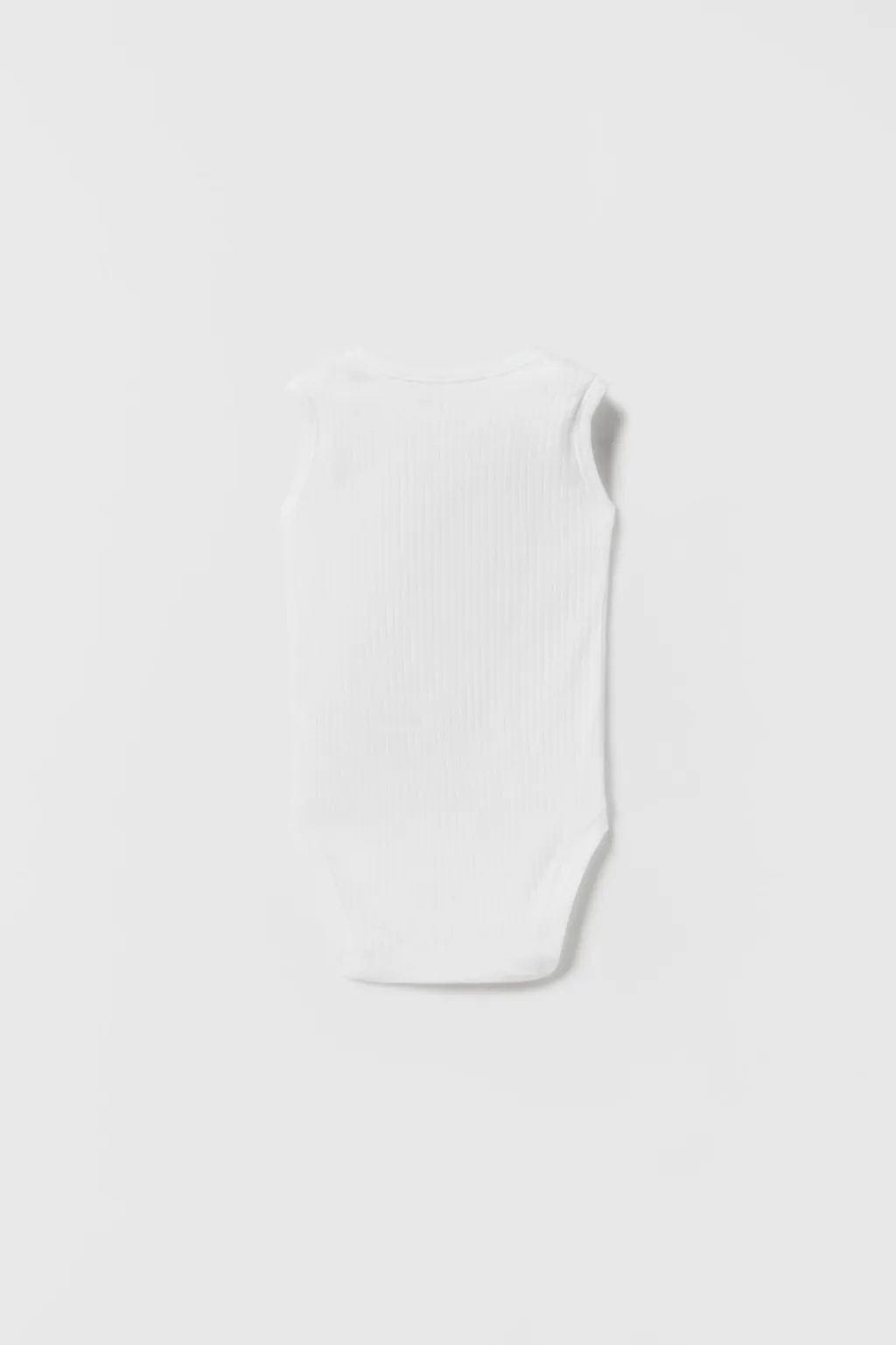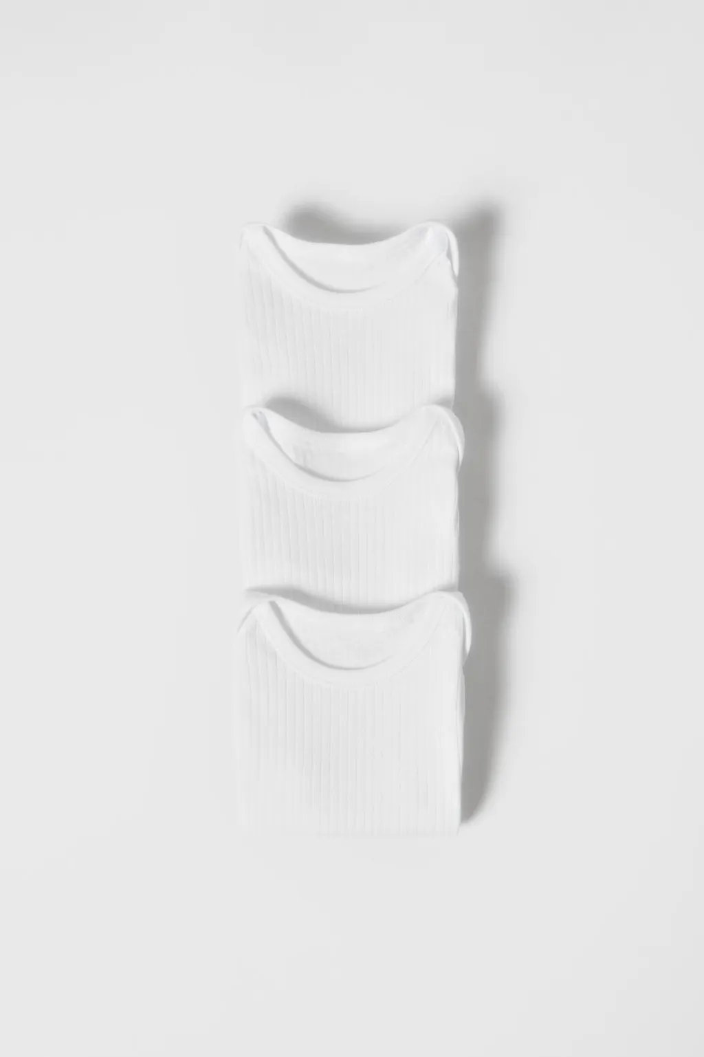 Pack de tres bodies con cuello redondo y manga sisa. Cierre botones presión en bajo.
