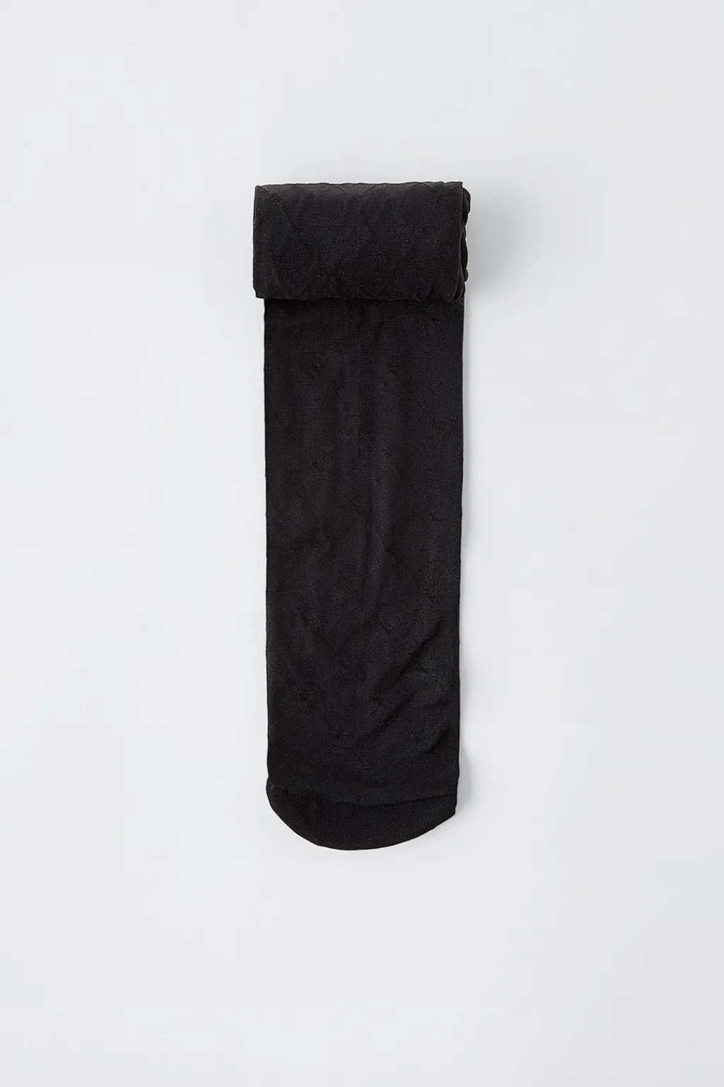 Media de microfibra con cinturilla elástica. Detalle corazones.