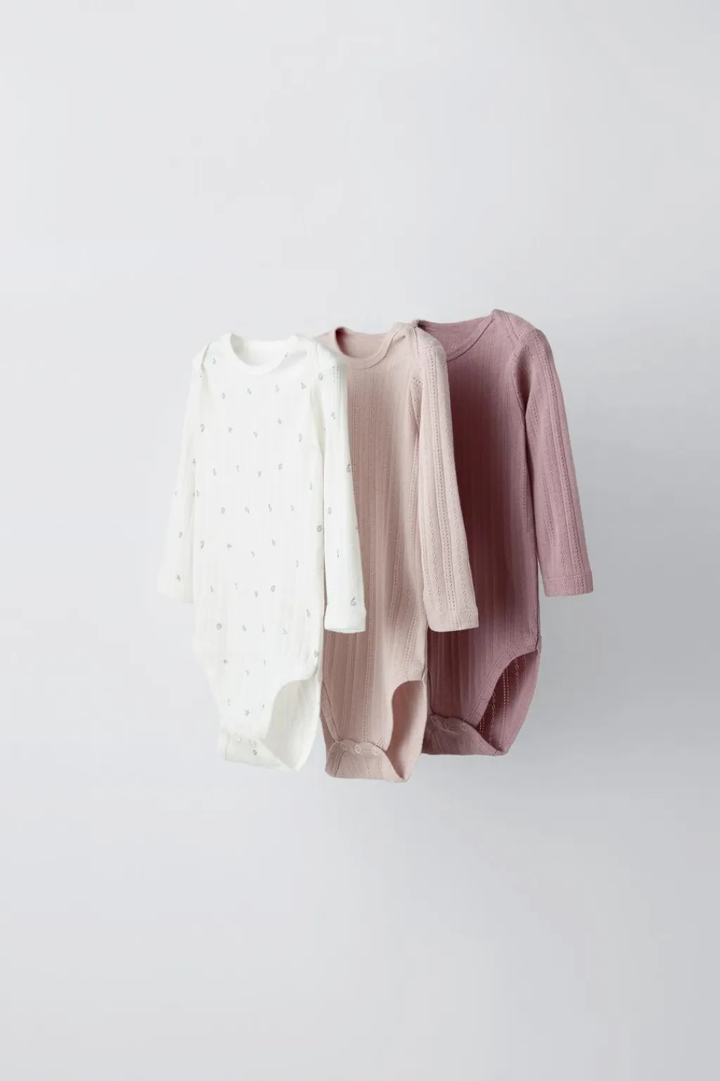 Pack de tres bodies con cuello redondo y manga larga. Cierre botones presión en bajo.