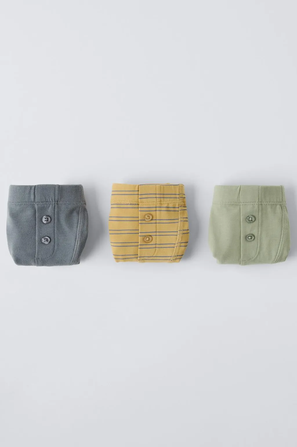 Pack de tres bóxer con cinturilla elástica. Aplique botones frontal.