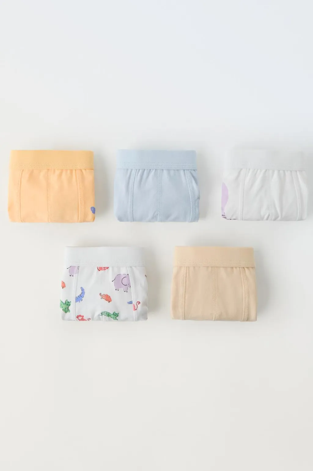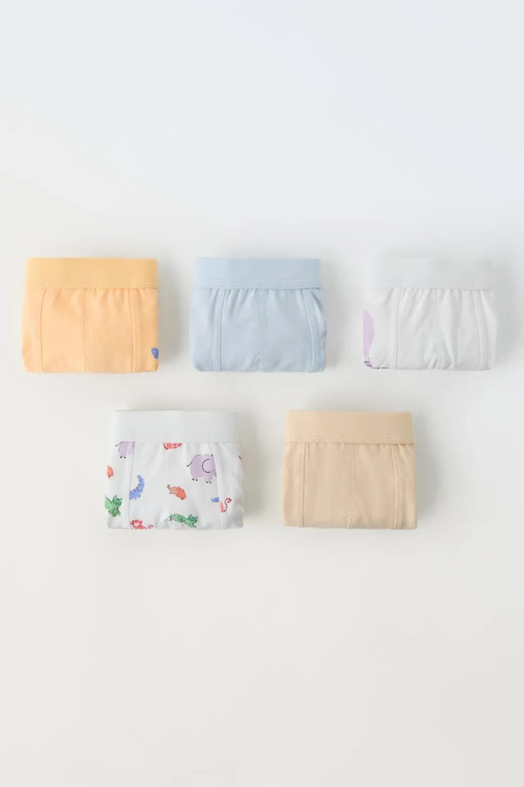Pack de cinco bóxer con cinturilla elástica. Estampado animalitos.