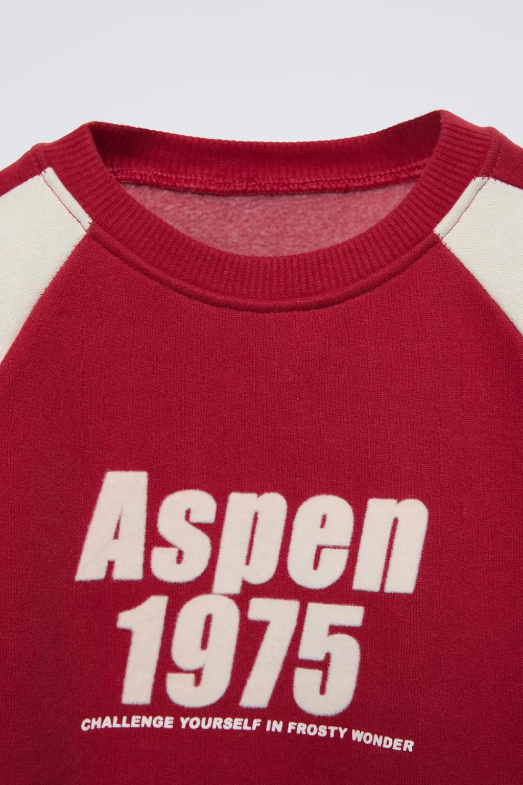 Sudadera con cuello redondo y manga larga. Acabados en rib. Estampado texto con detalle flock. Calidad interior cálida y suave.