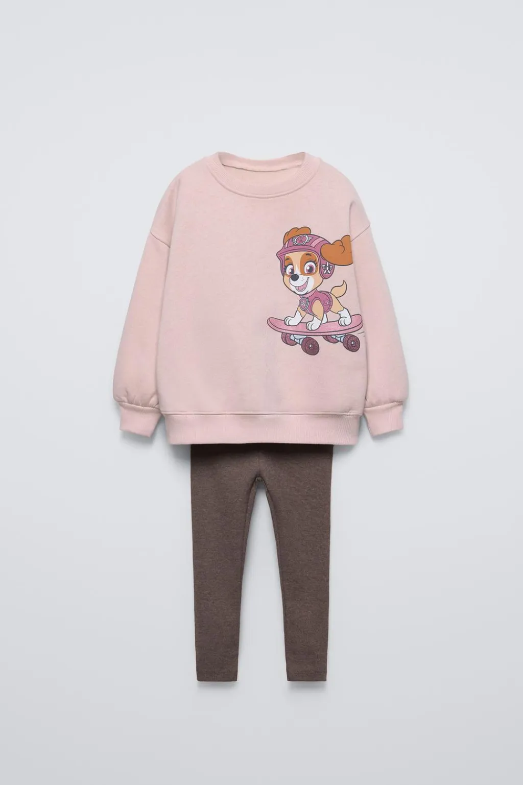Conjunto de dos piezas. Sudadera con cuello redondo y manga larga. Acabados en rib. Estampado SKYE PAW PATROL ™ con detalle brillo y aplique etiqueta en espalda. Calidad perchada, cálida y suave. Legging con cinturilla elástica y aplique etiqueta en delantero.