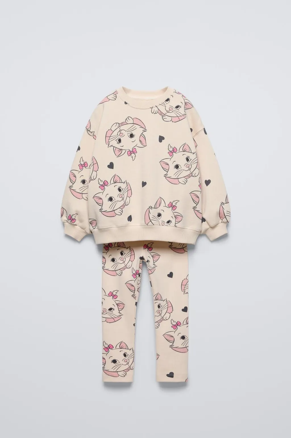 Conjunto dos piezas. Sudadera con cuello redondo y manga larga. Acabados en rib. Legging con cinturilla elástica. Estampado MARIE © DISNEY. Calidad interior cálida y suave.