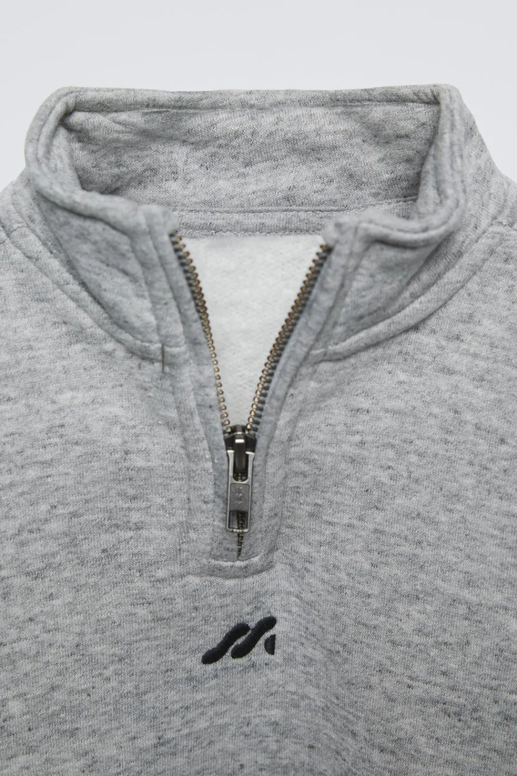Sudadera con cuello subido y manga larga. Acabados en rib. Cierre con cremallera frontal en canesú. Detalle bordado frontal. Calidad interior perchada, cálida y suave.