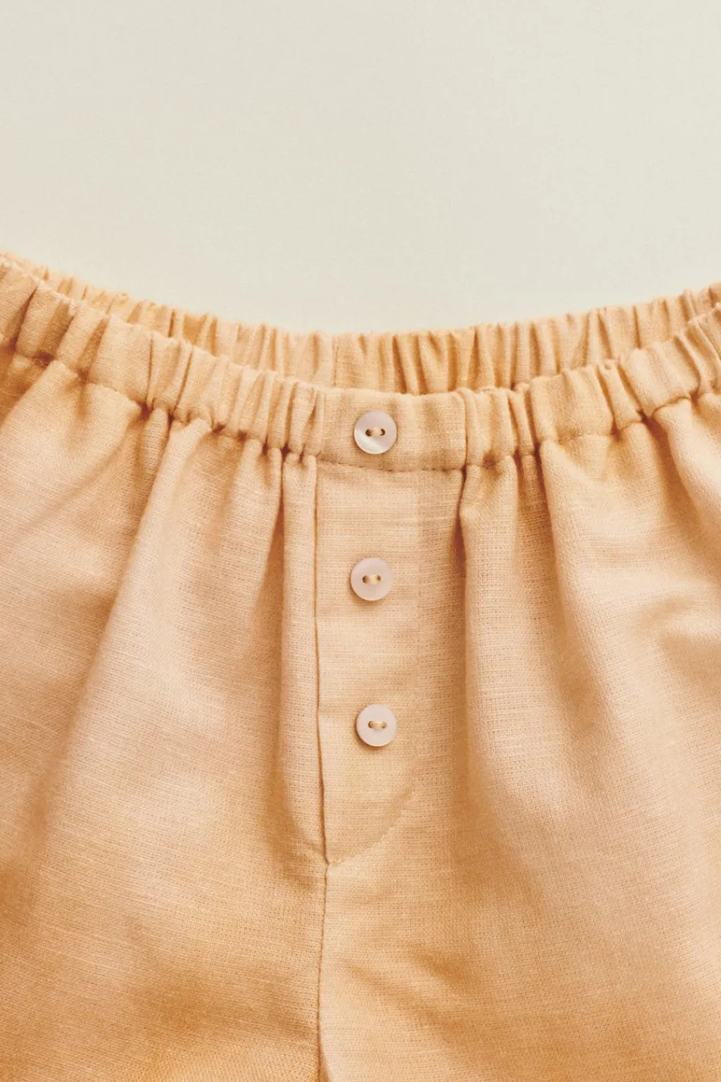 Bermuda tie dye confeccionada en un tejido ligero con mezcla de algodón y lino estampado dip dye. La cinturilla elástica aporta comodidad y como detalle tiene unos botones nacarados.