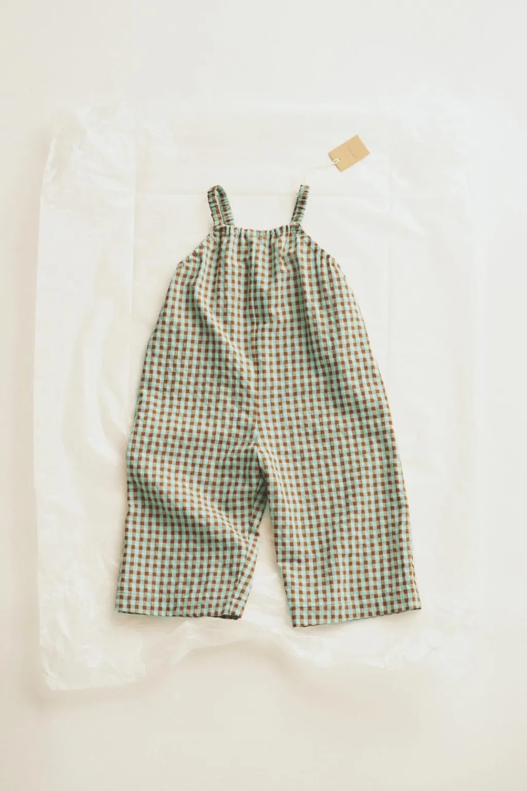 Este peto con un fit amplio está confeccionado en un tejido con estampado de cuadritos vichy. Las gomas en los tirantes y cuello le aportan comodidad.